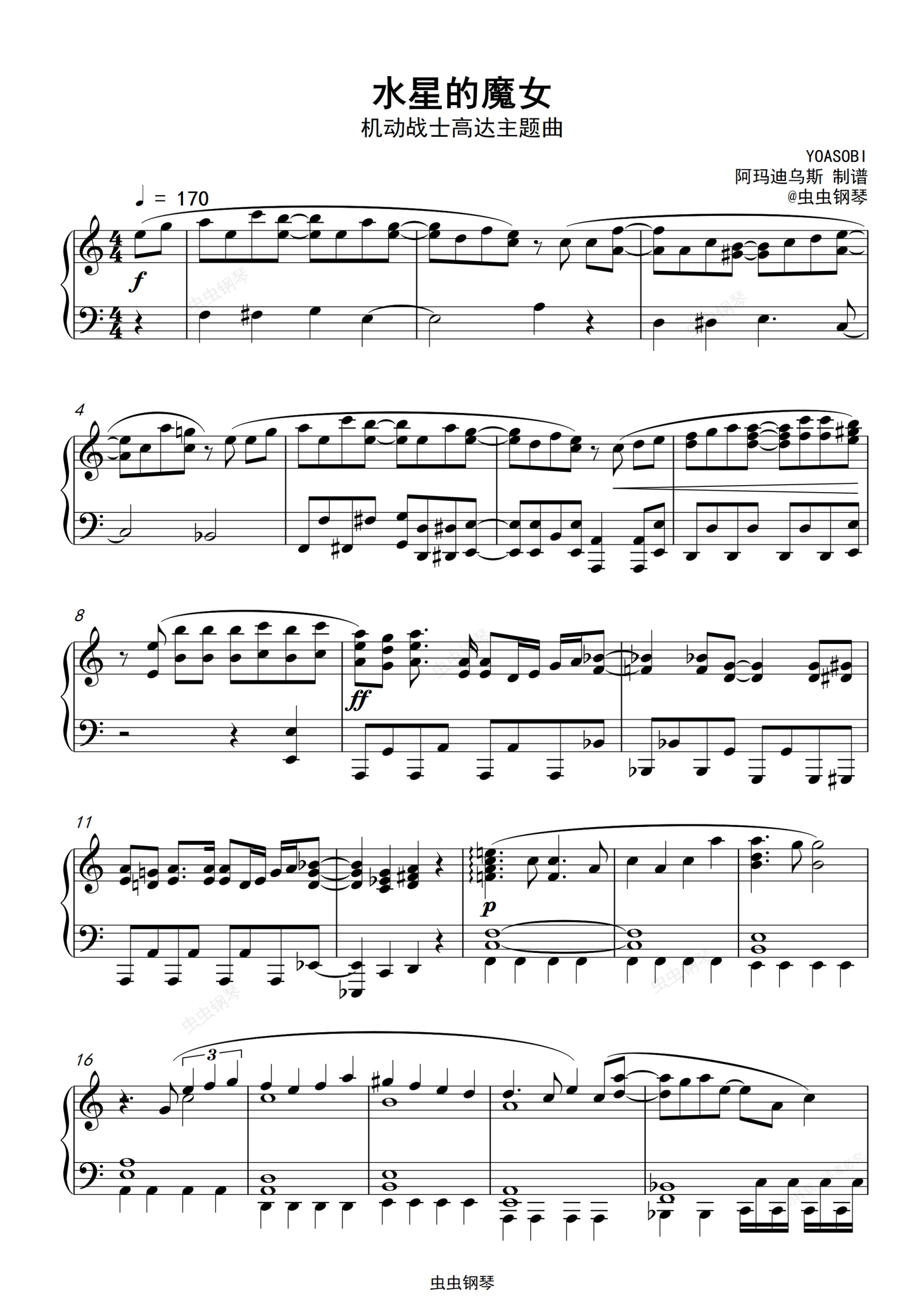 钢琴谱:YOASOBI <祝福>(机动战士高达主题曲)水星的魔女