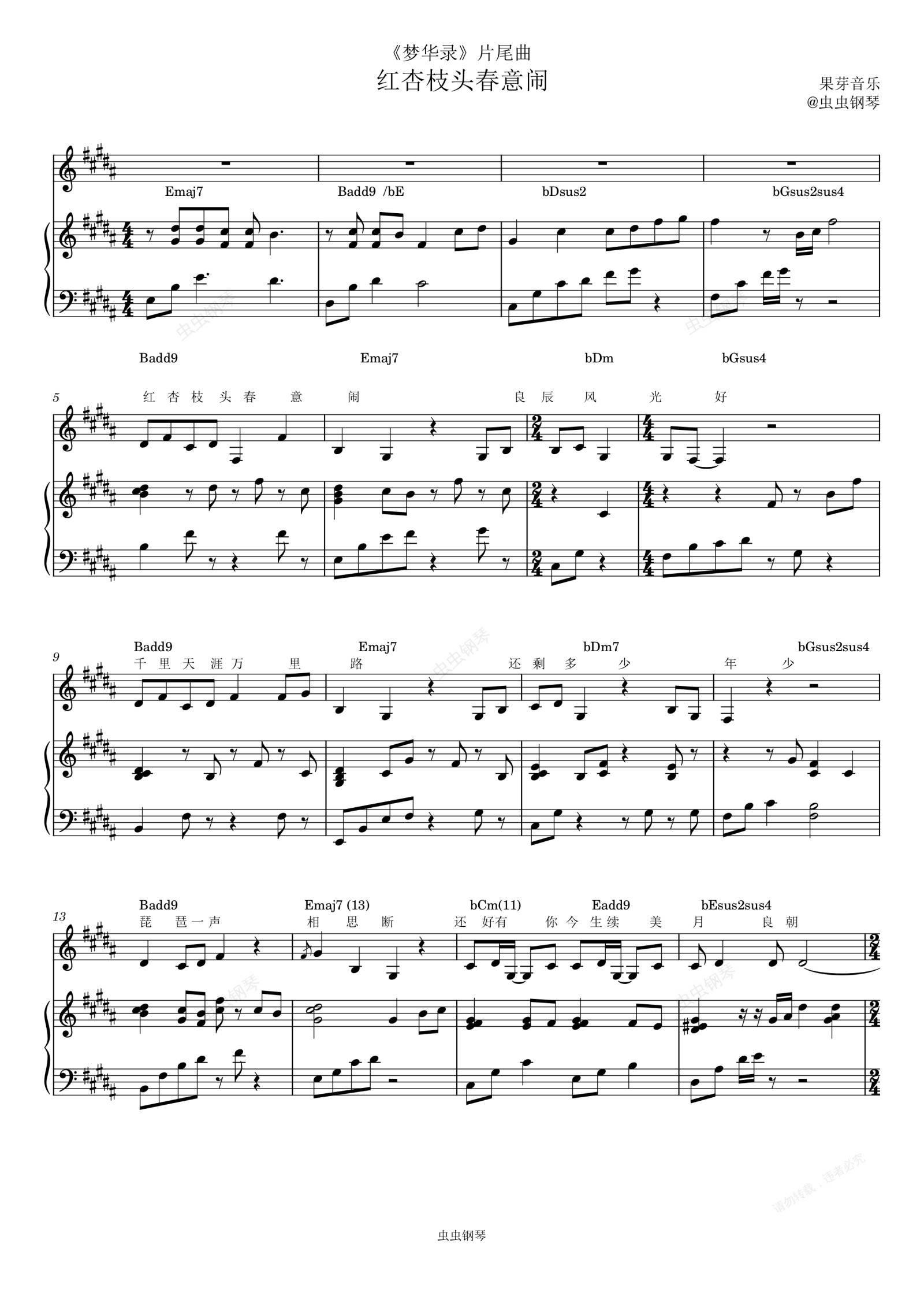 钢琴谱:梦华录插曲《红枝头春意闹》原版弹唱版