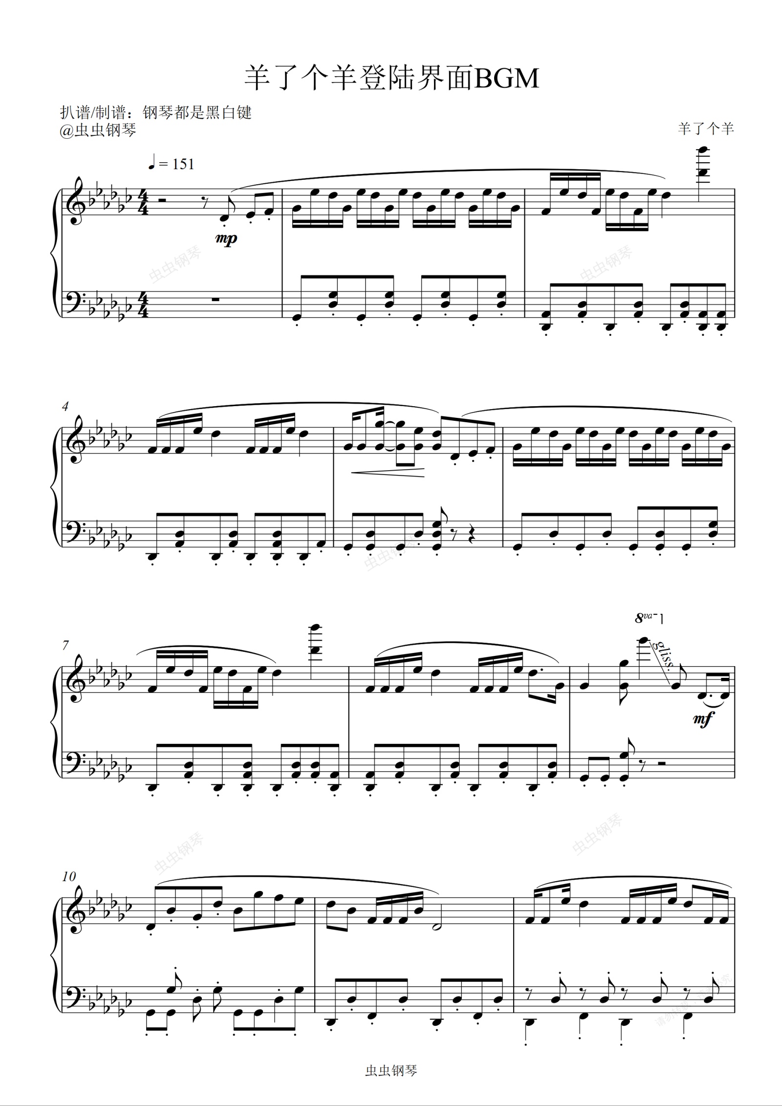 钢琴谱:羊了个羊 登陆界面BGM [爆燃钢琴独奏]