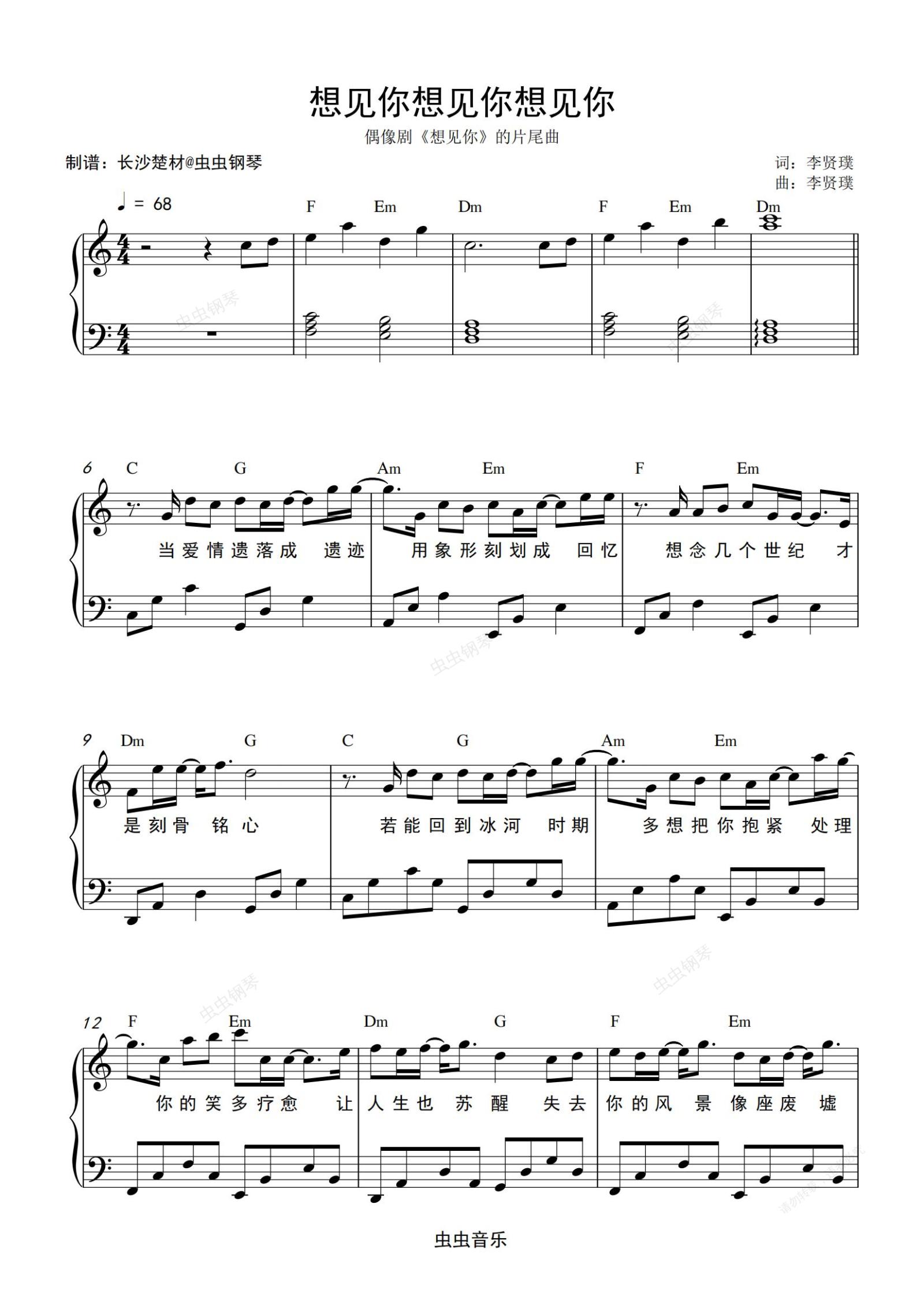 钢琴谱:想见你想见你想见你(C调简易伴奏版)
