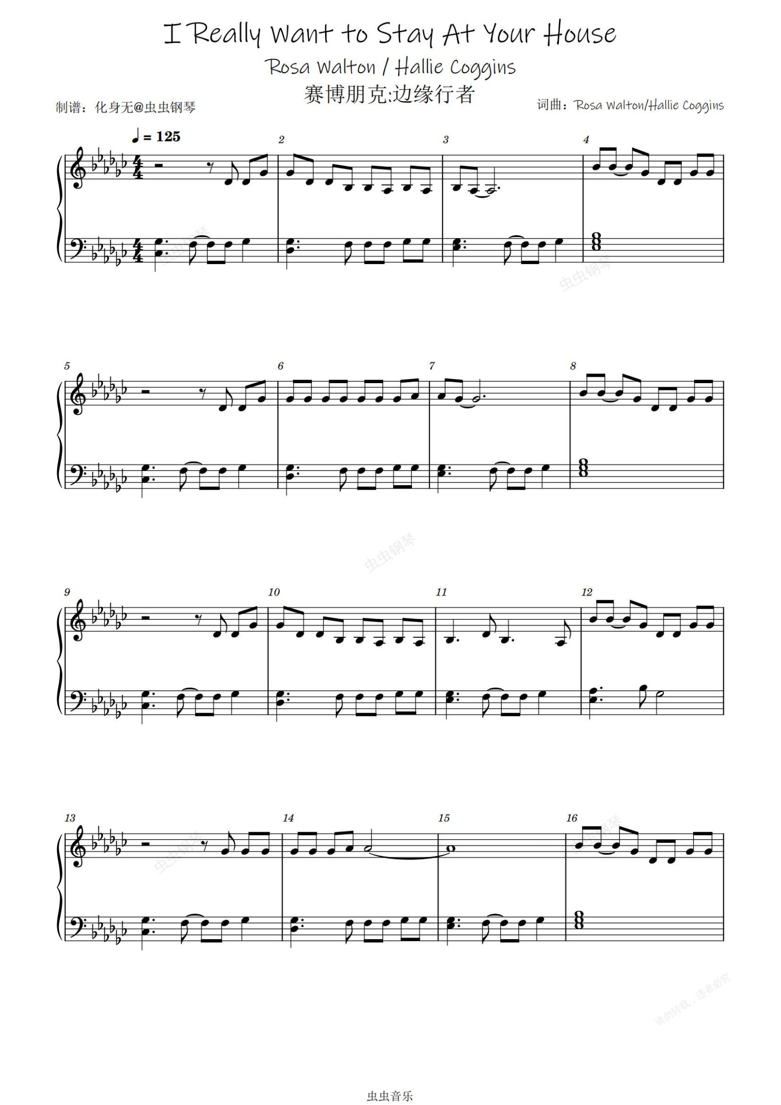 钢琴谱:I Really Want to Stay At Your House 赛博朋克:边缘行者 插曲
