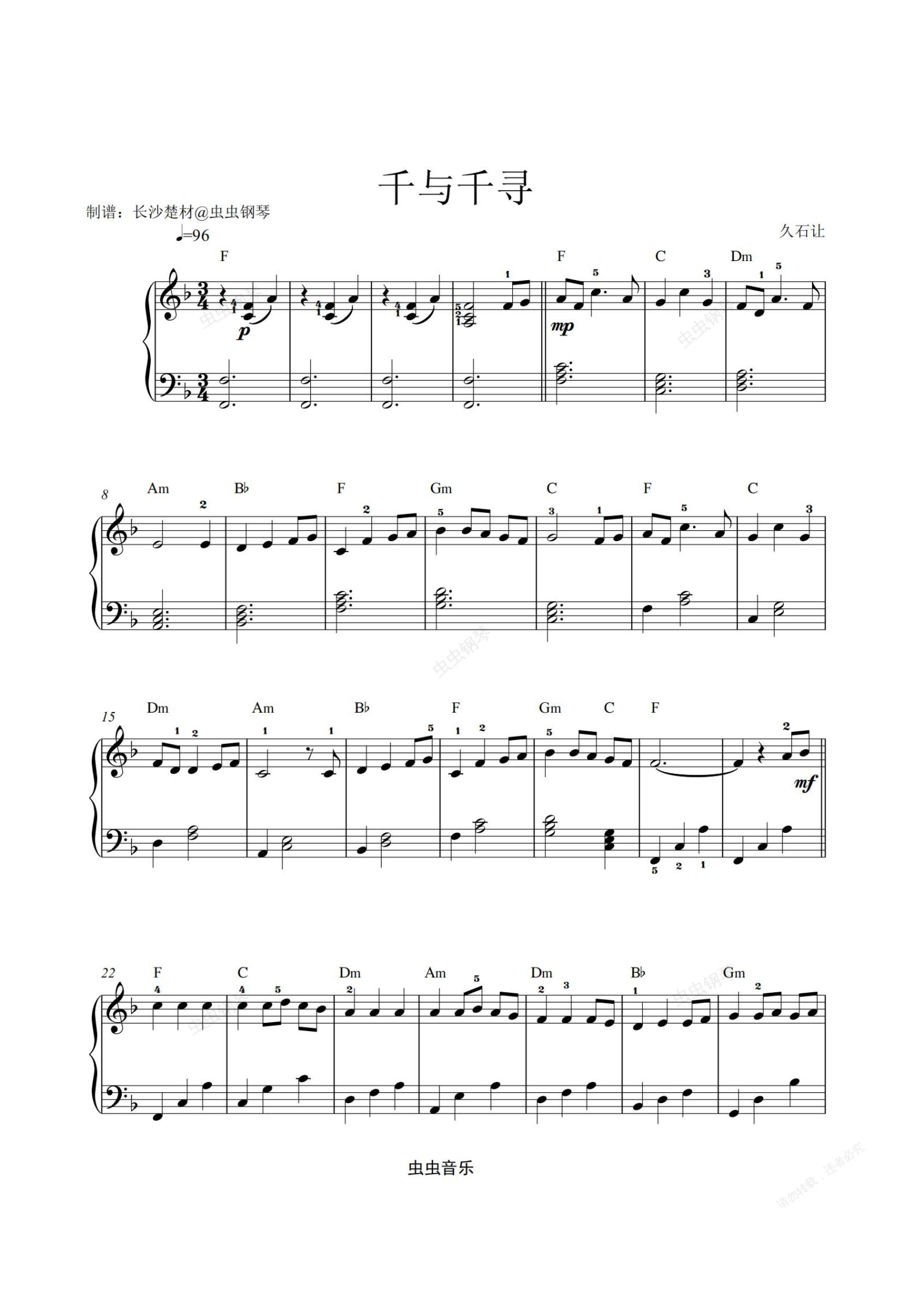 钢琴谱:千与千寻(C调管弦乐伴奏版)