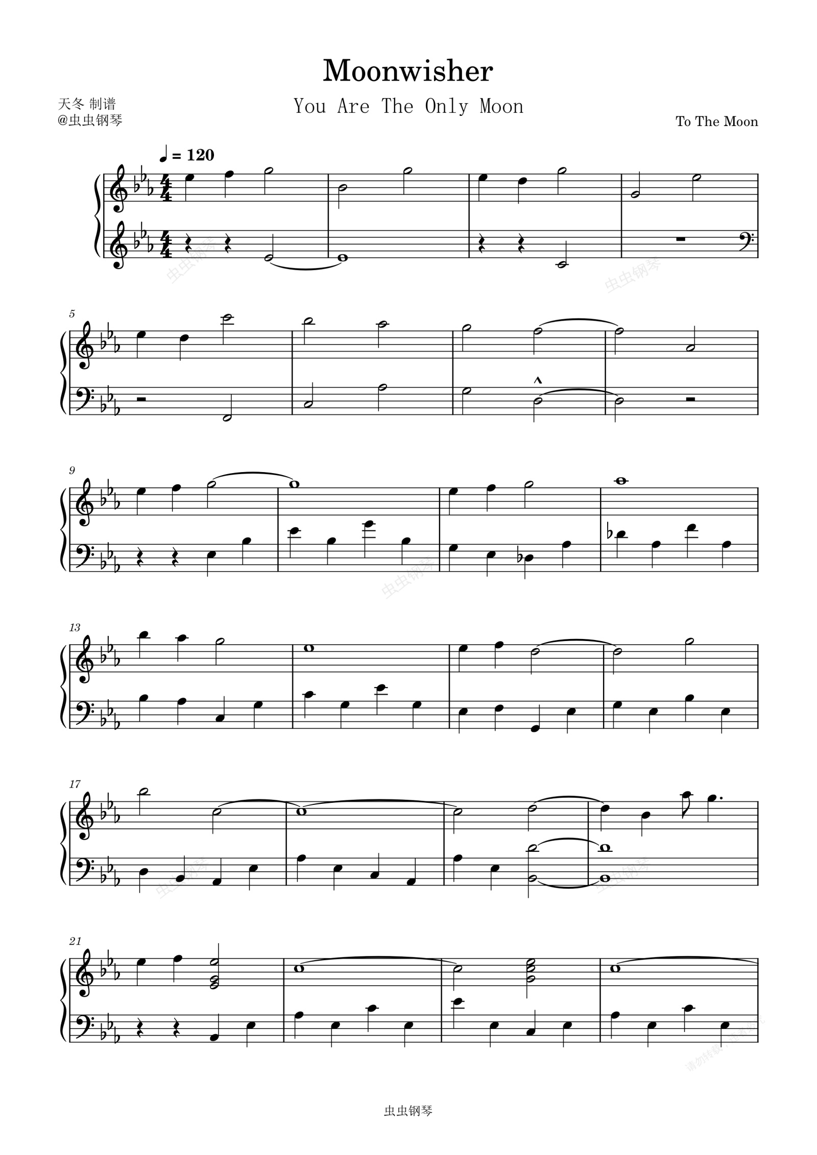 钢琴谱:Moonwisher-去月球原声 好听易弹