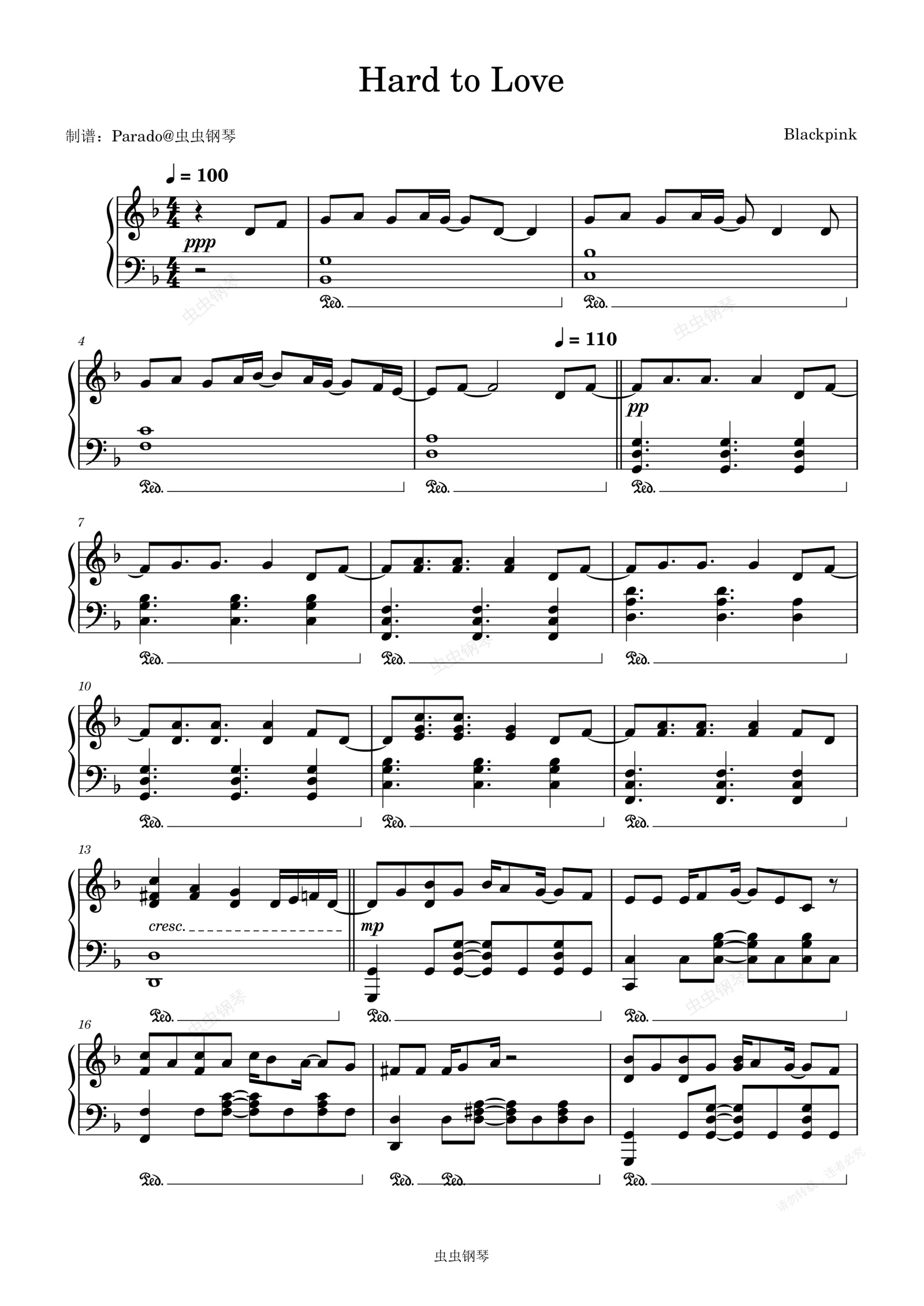 钢琴谱:【火爆新曲】Hard to Love - BLACKPINK