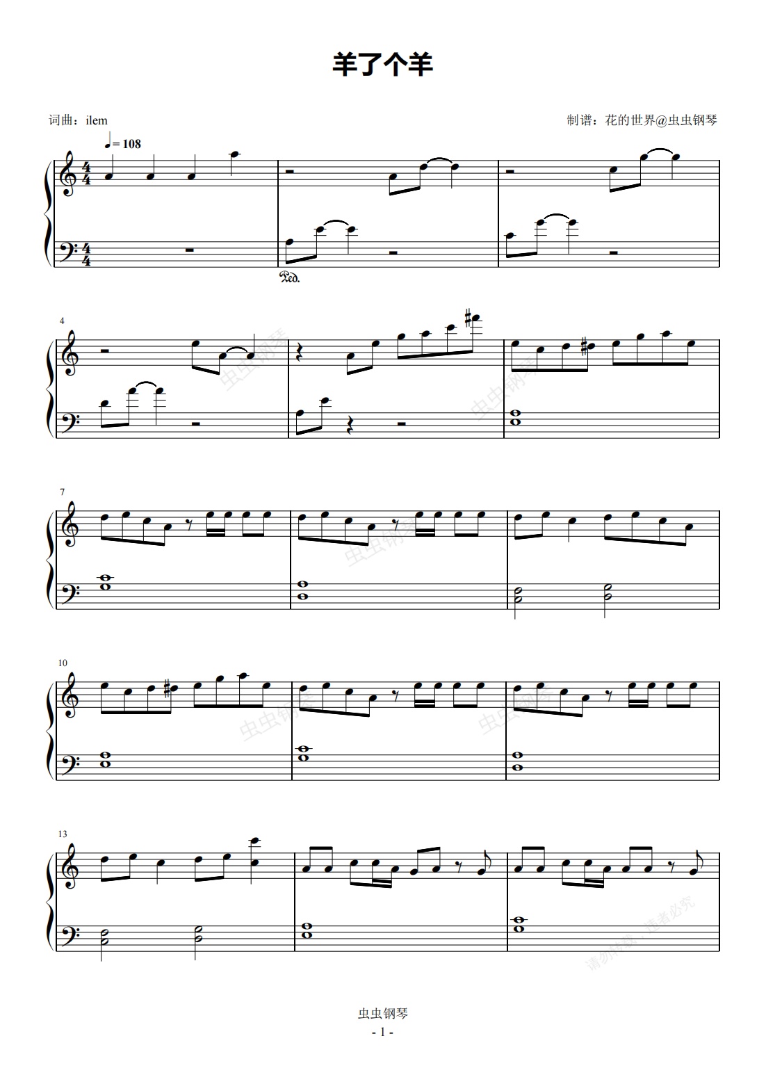 钢琴谱:羊了个羊 C调简单版 容易弹