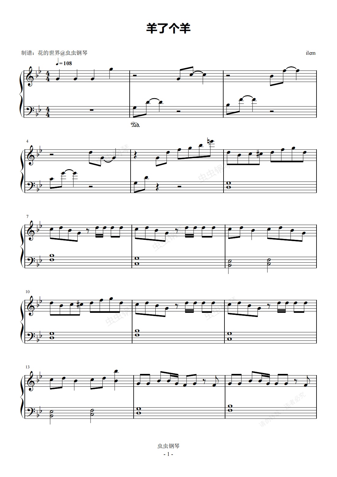 钢琴谱:羊了个羊 原调简单版 容易弹