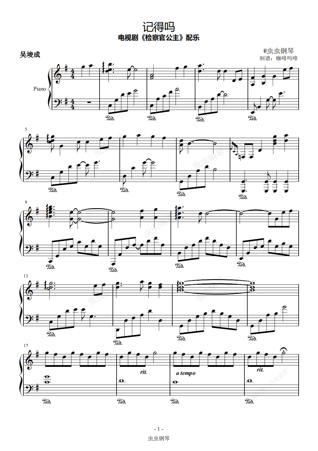 钢琴谱:记得吗-《检察官公主》配乐 钢琴谱