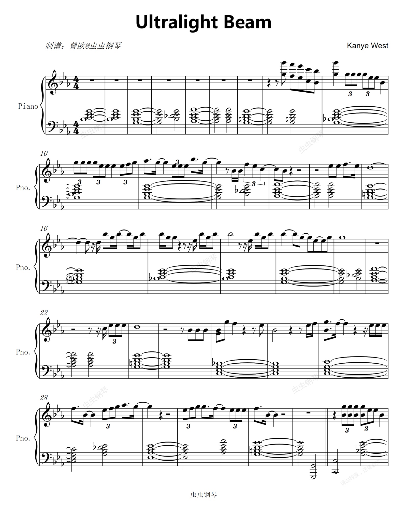 钢琴谱:Ultralight Beam - Kanye West/Chance the Rapper/Kirk Franklin/The-Dream/Kelly Price