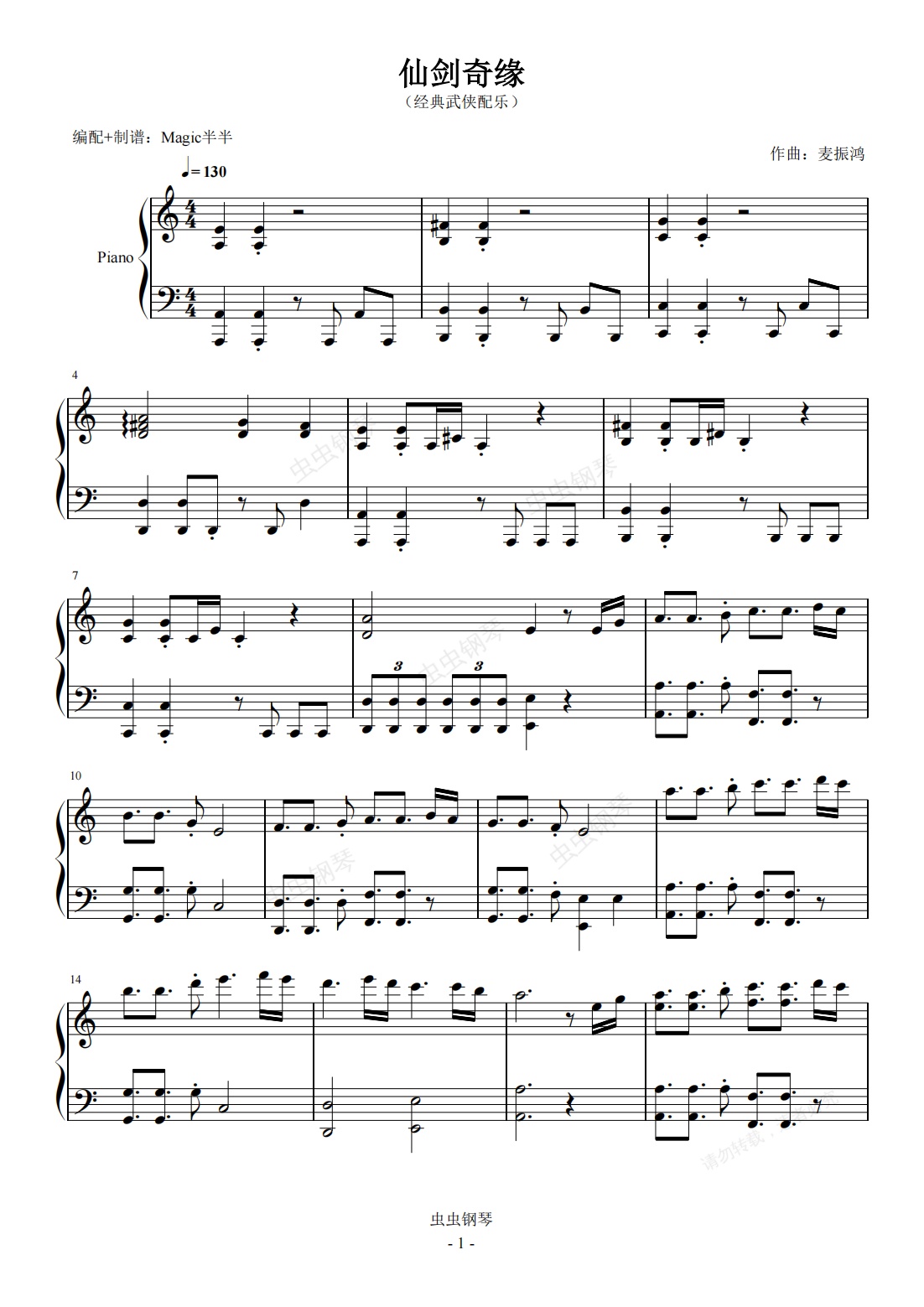 钢琴谱:仙剑奇缘(C调) 经典武侠配乐