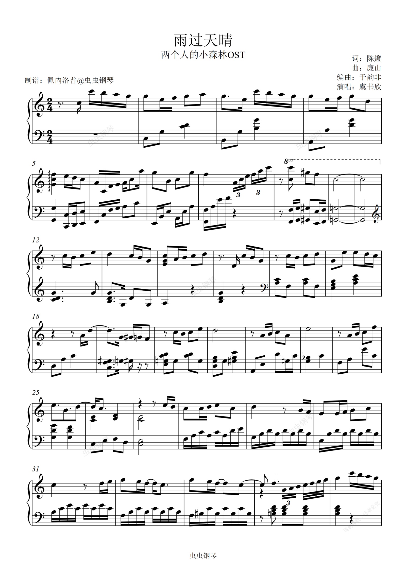 钢琴谱:雨过天晴《两个人的小森林OST》