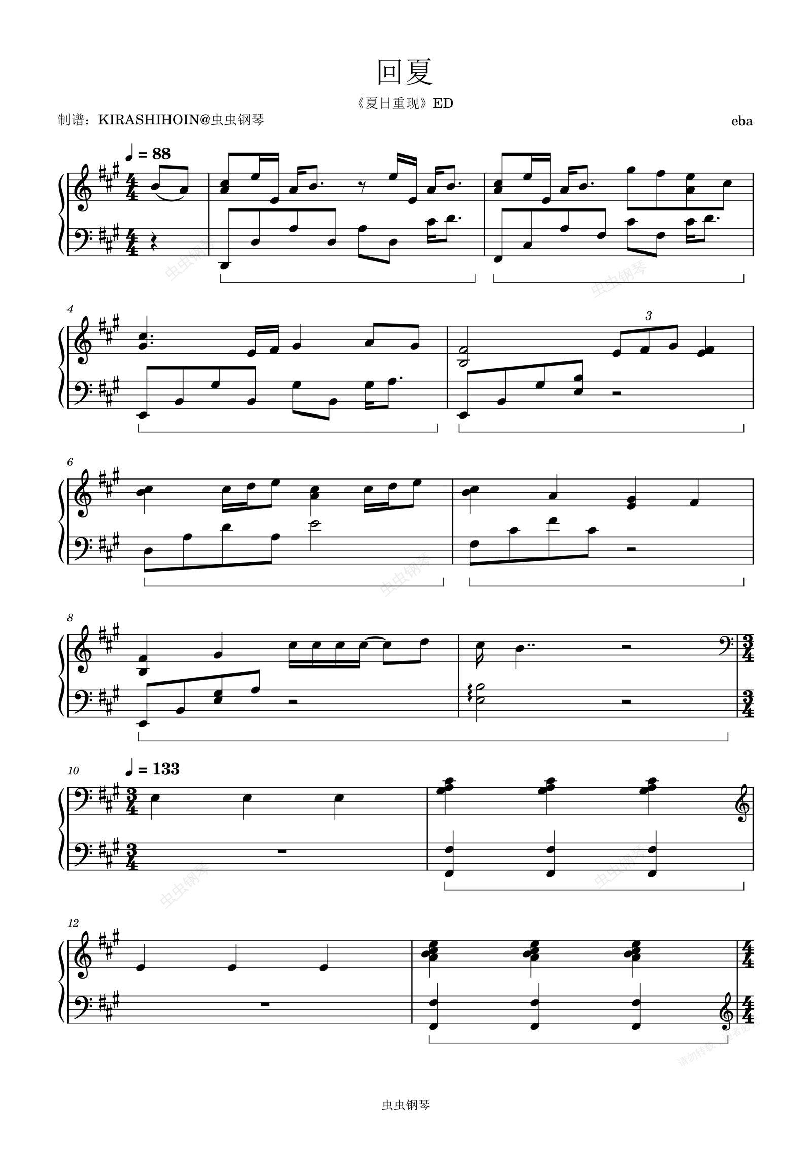 钢琴谱:回夏(《夏日重现》ED/片尾曲)- cadode