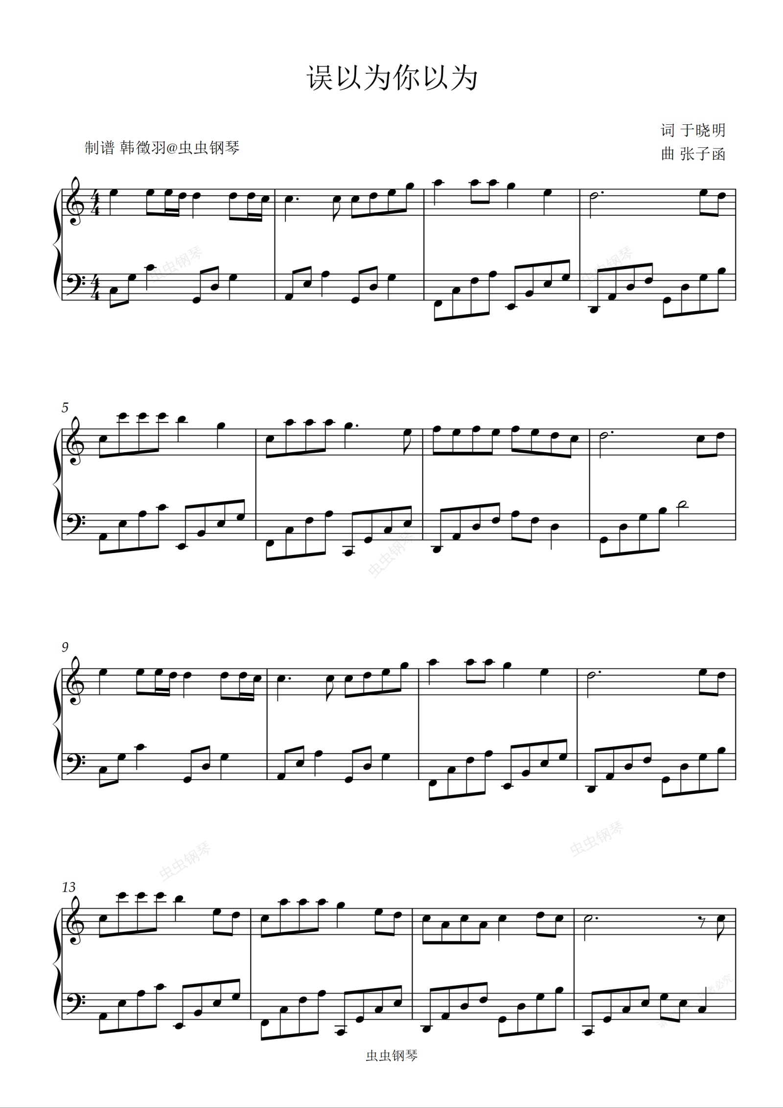 钢琴谱:张云雷 误以为你以为