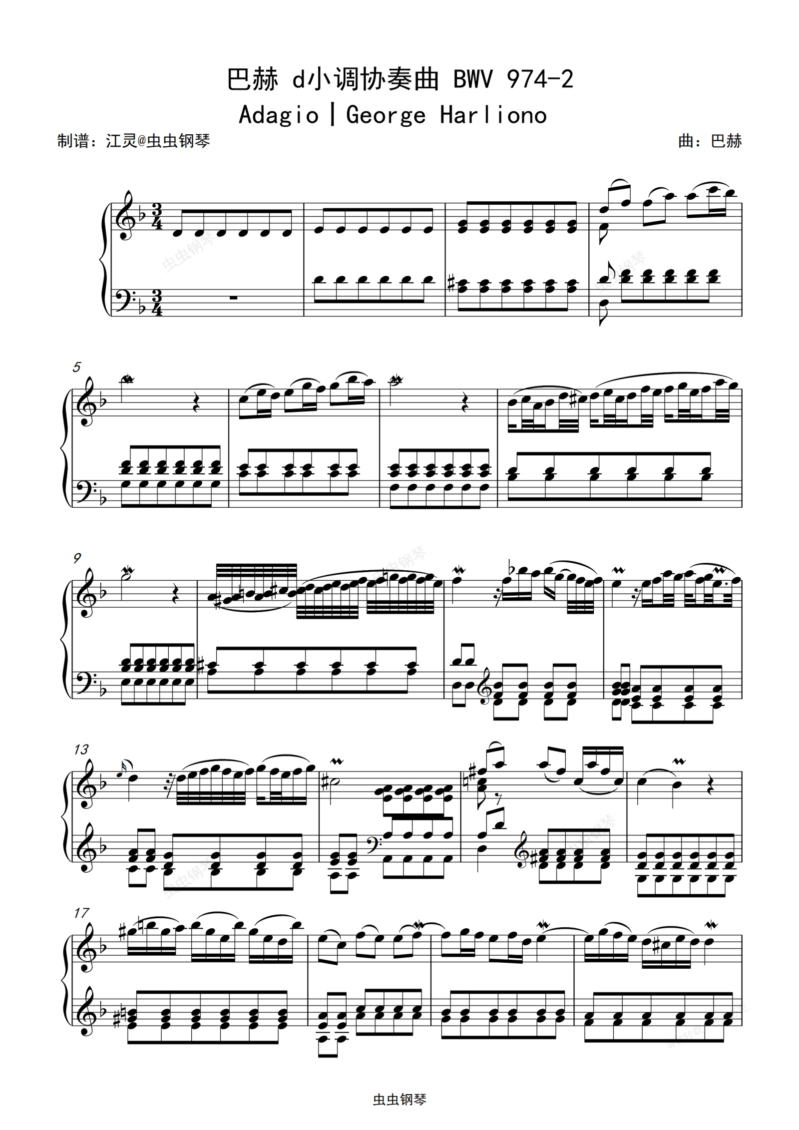 钢琴谱:巴赫 d小调协奏曲 BWV 974-2