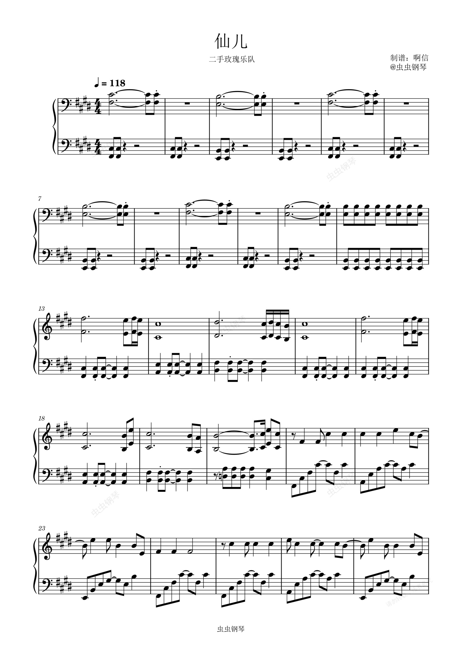 钢琴谱:仙儿-二手玫瑰乐队-原版啊信编配