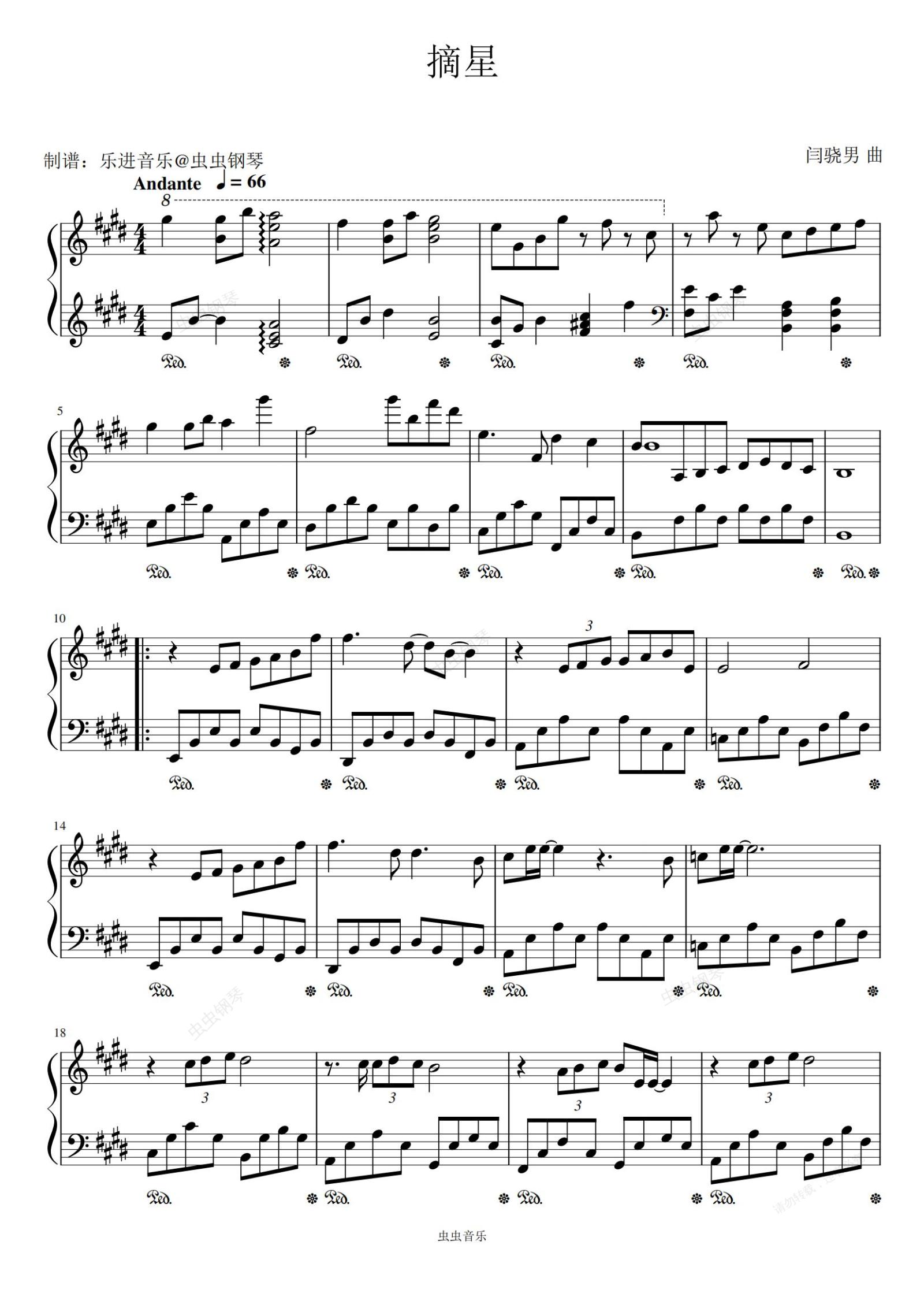钢琴谱:《摘星》 周笔畅演唱 原调