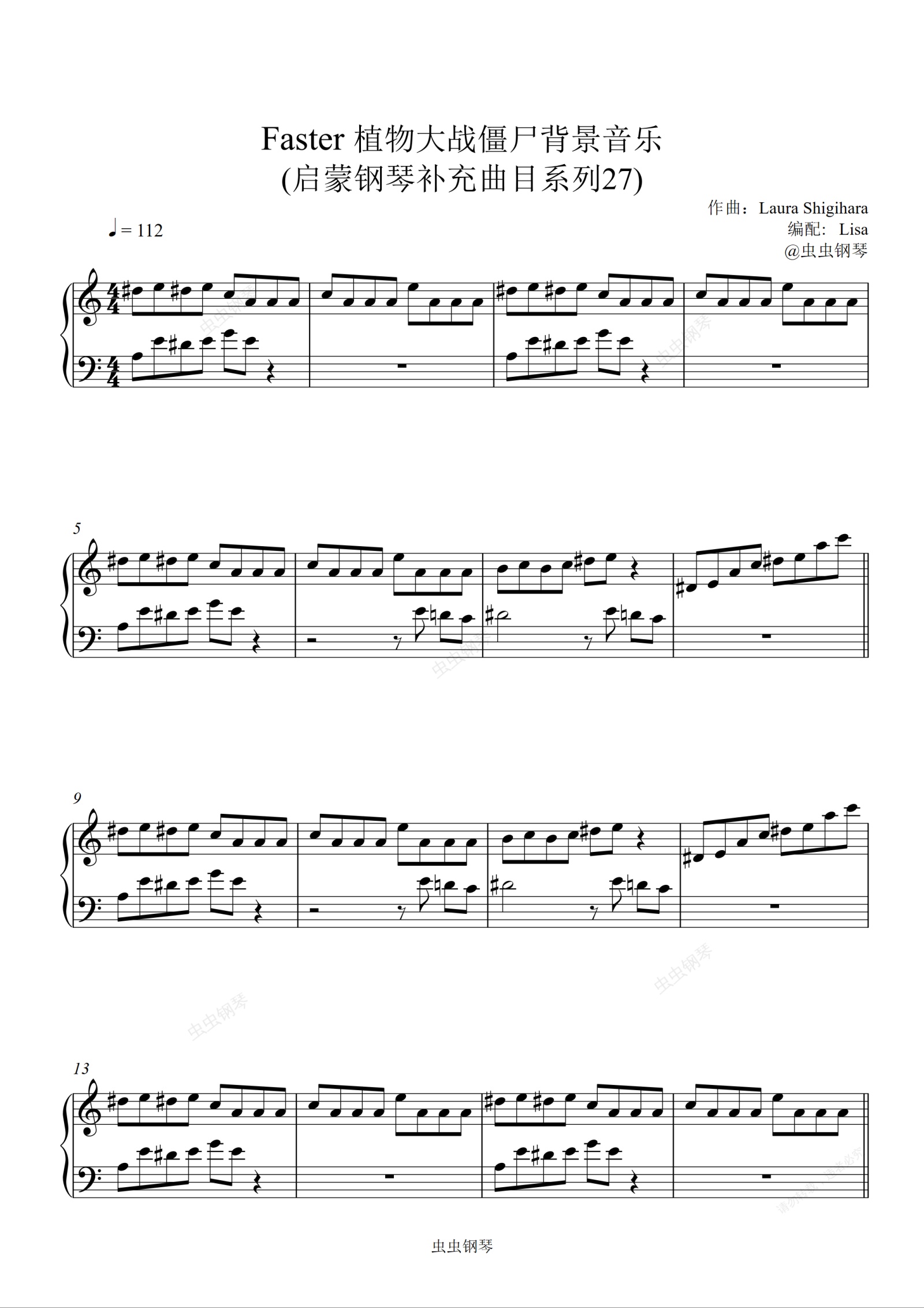 钢琴谱:Faster 植物大战僵尸背景音乐(小汤3水平)