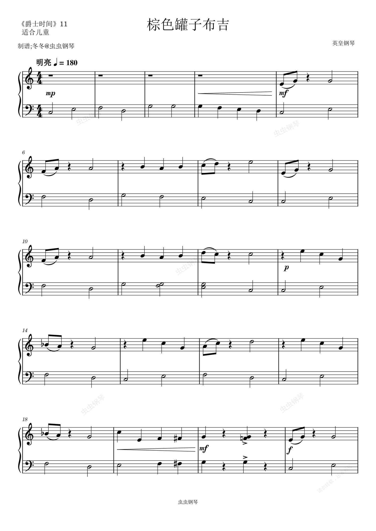 钢琴谱:棕色罐子布吉