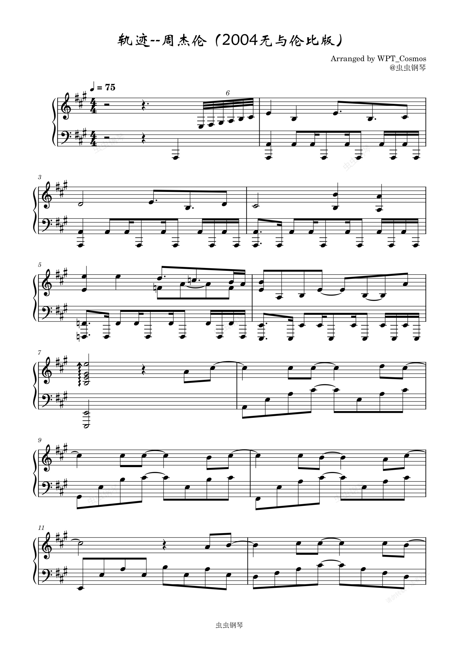 钢琴谱:轨迹--周杰伦(2004年无与伦比版)