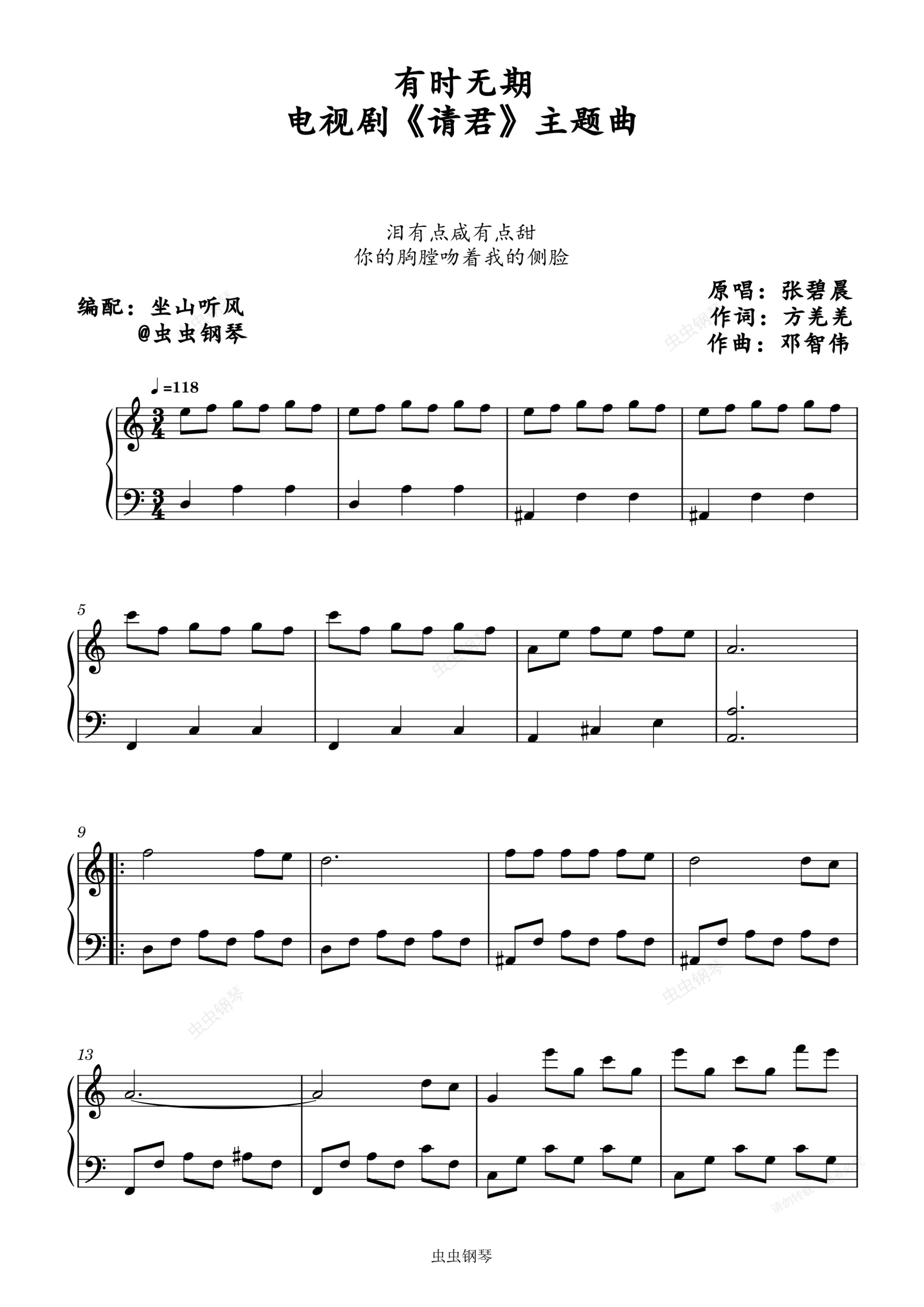 钢琴谱:有时无期—— 电视剧《请君》主题曲