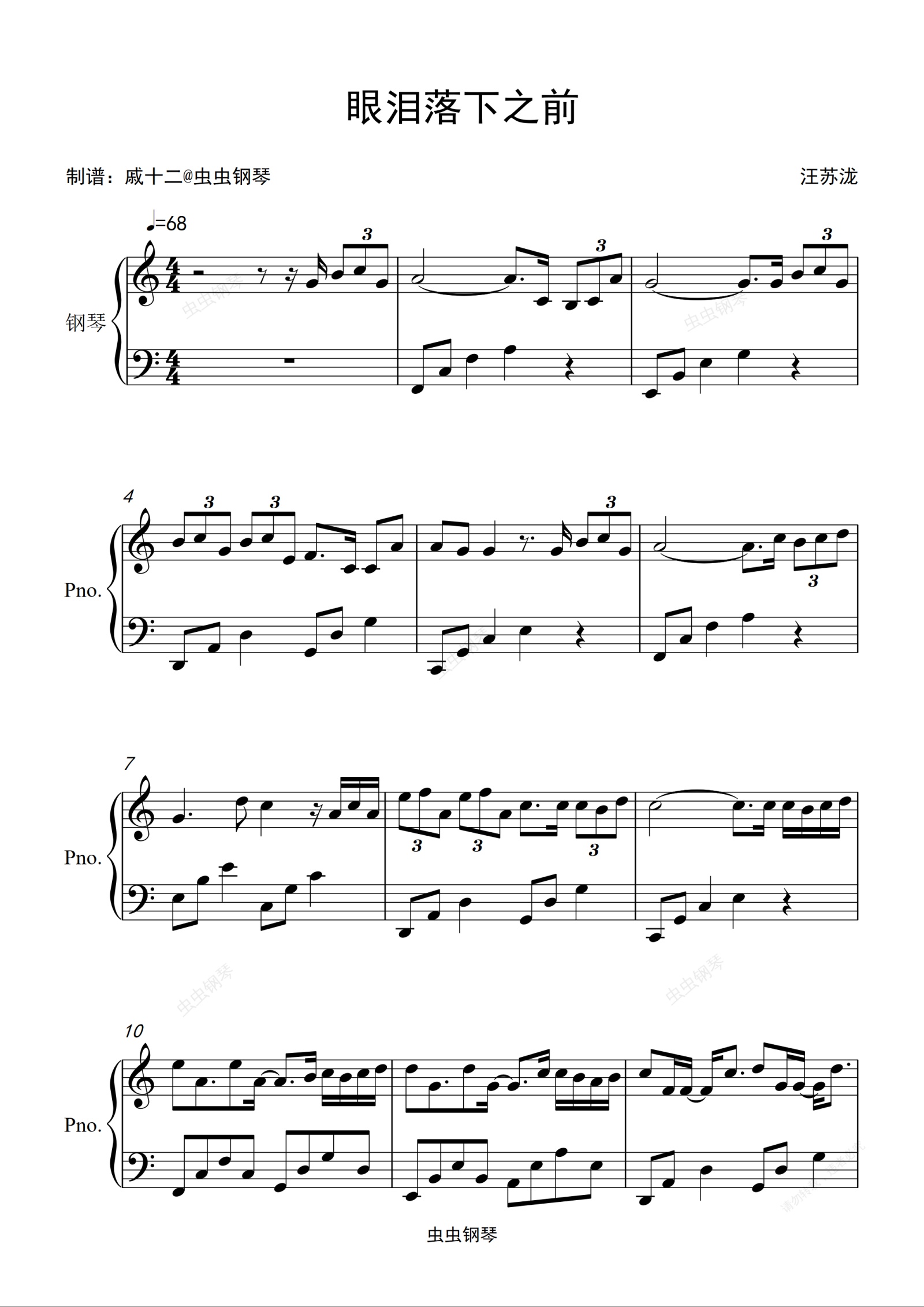 钢琴谱:眼泪落下之前 《暗恋·橘生淮南》插曲-C调简单版