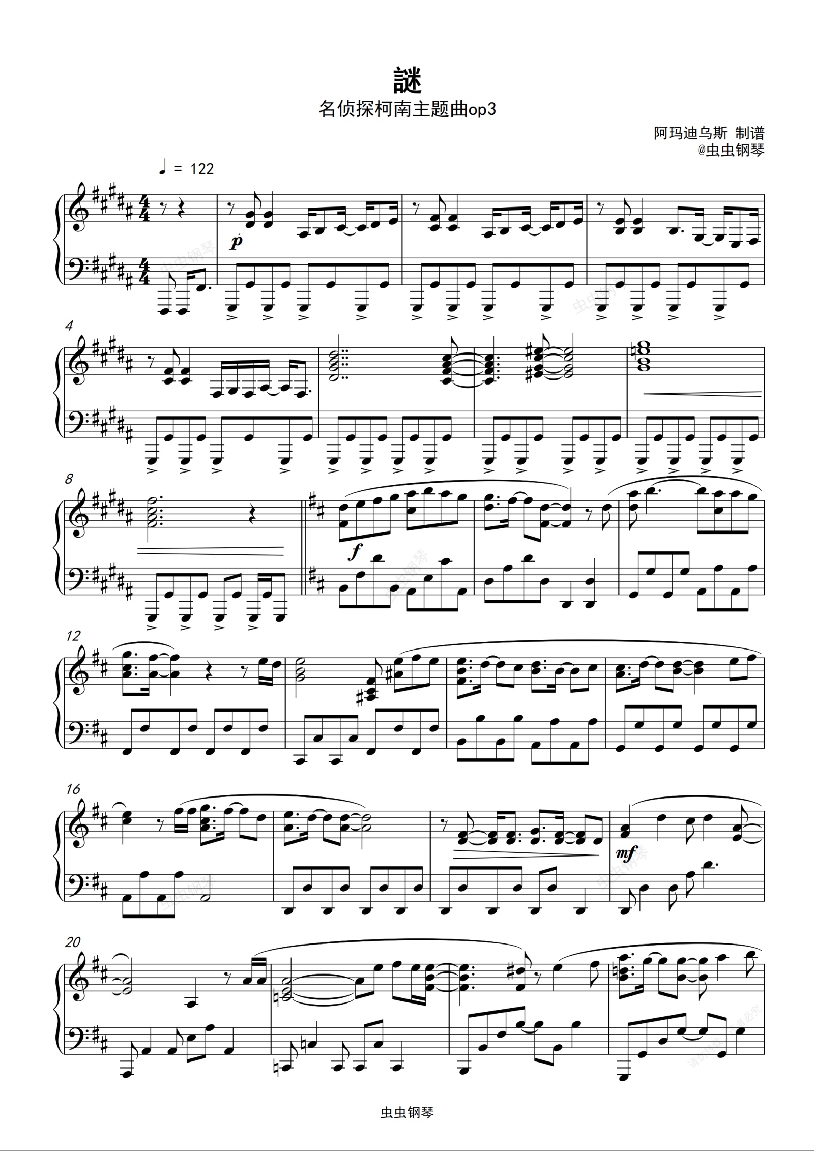 钢琴谱:名侦探柯南主题曲op3 < 謎 >