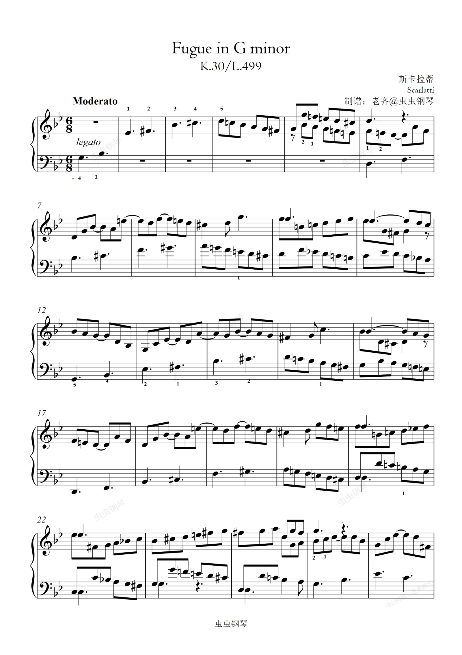 意大利作曲家和羽管键琴家多梅尼科·斯卡拉蒂(,1685 - 1757)的近六百首键盘奏鸣曲在音乐史上占有重要地位,其中非常著名的一首就是编号为 K. 30 的 G 小调奏鸣曲。