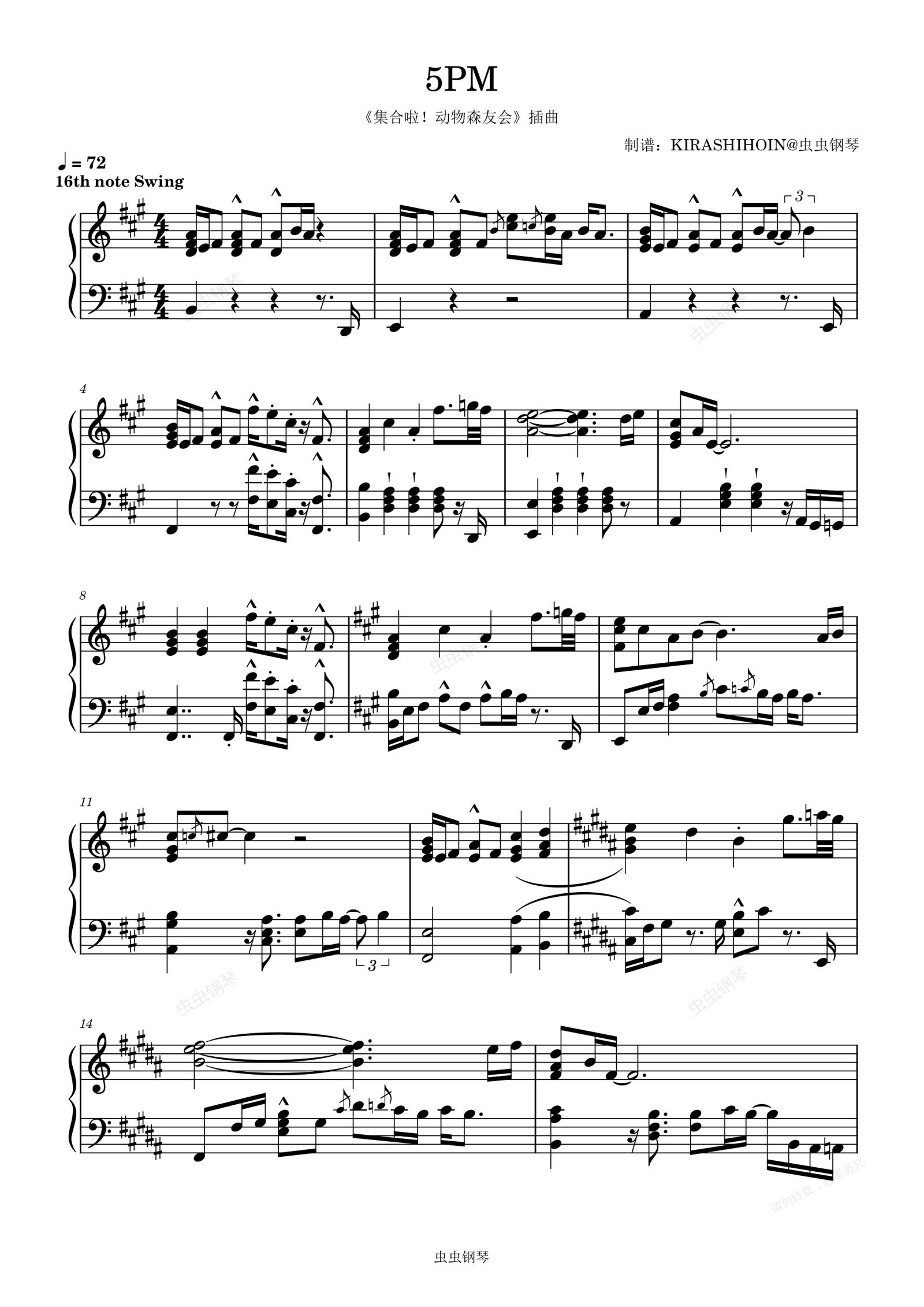 钢琴谱:5PM(《集合啦!动物森友会》插曲)