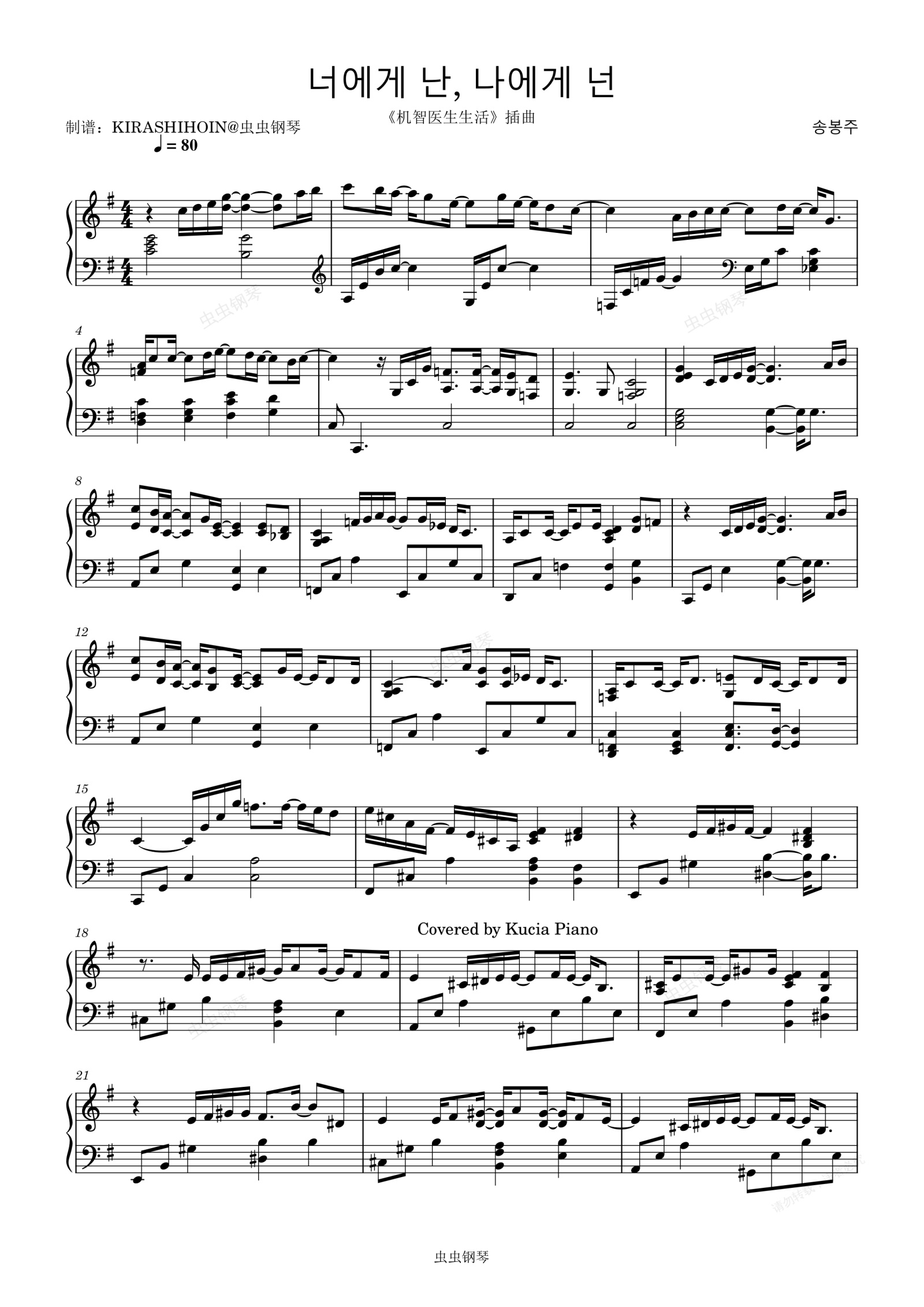钢琴谱:너에게 난, 나에게 넌(《机智医生生活》插曲)- Mido and Falasol