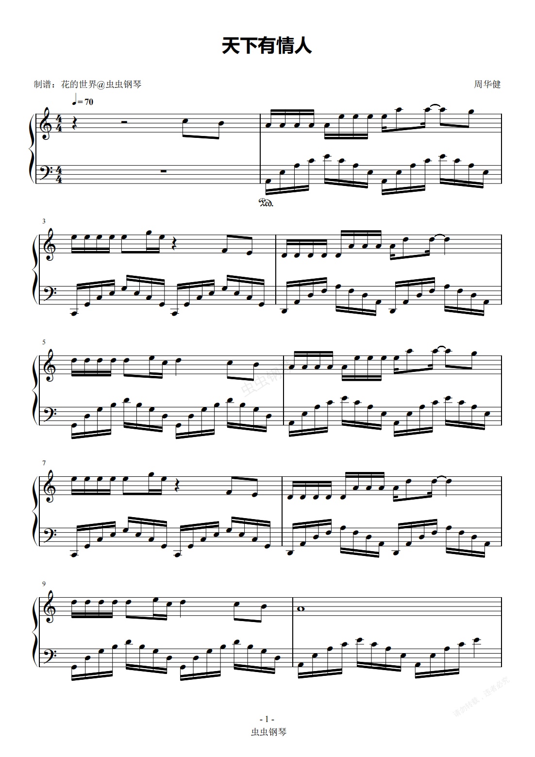 钢琴谱:天下有情人 C调简易 周华健 齐豫 流行经典