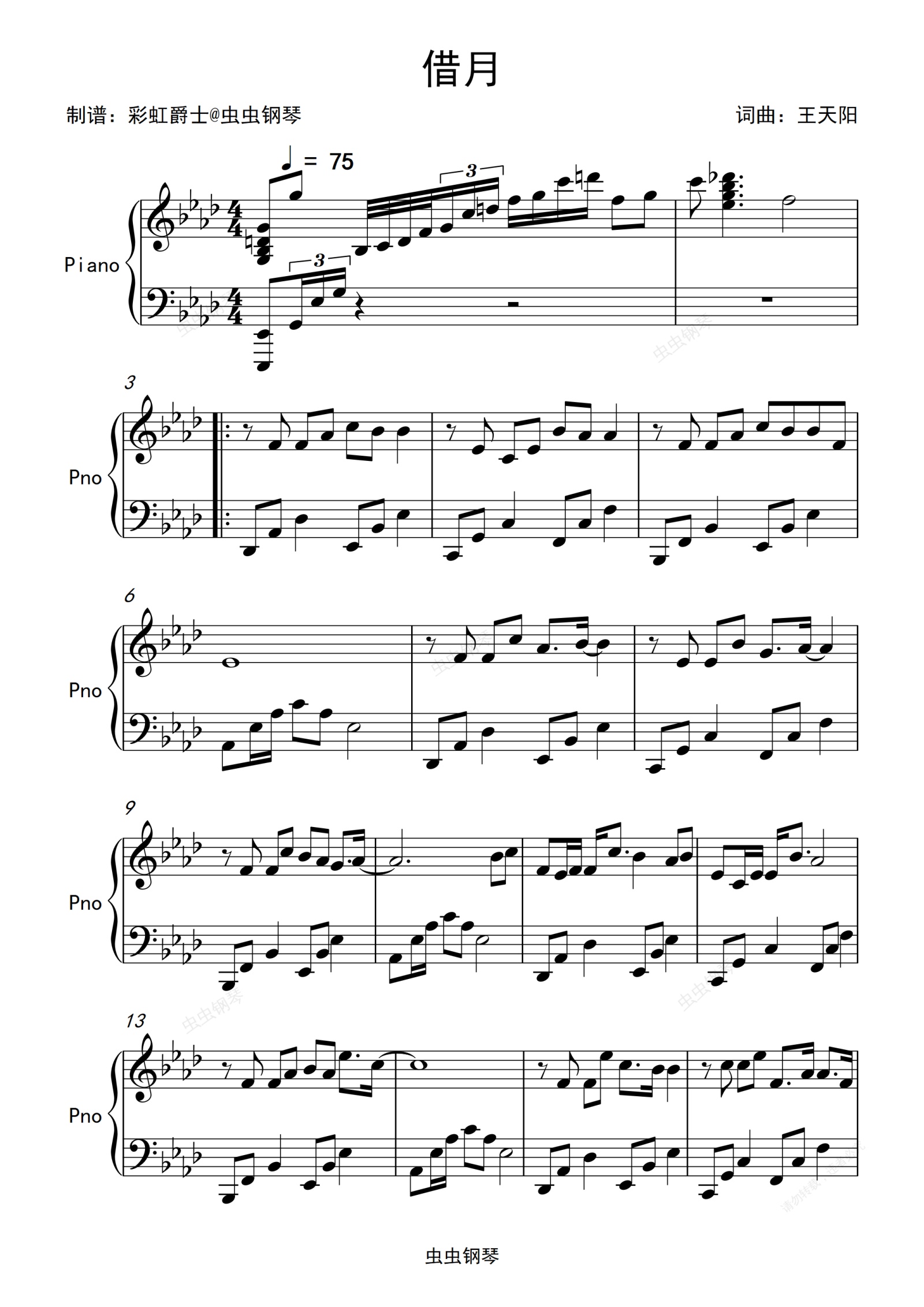钢琴谱:借月-就借这月光再与你对望-抖音 钢琴谱