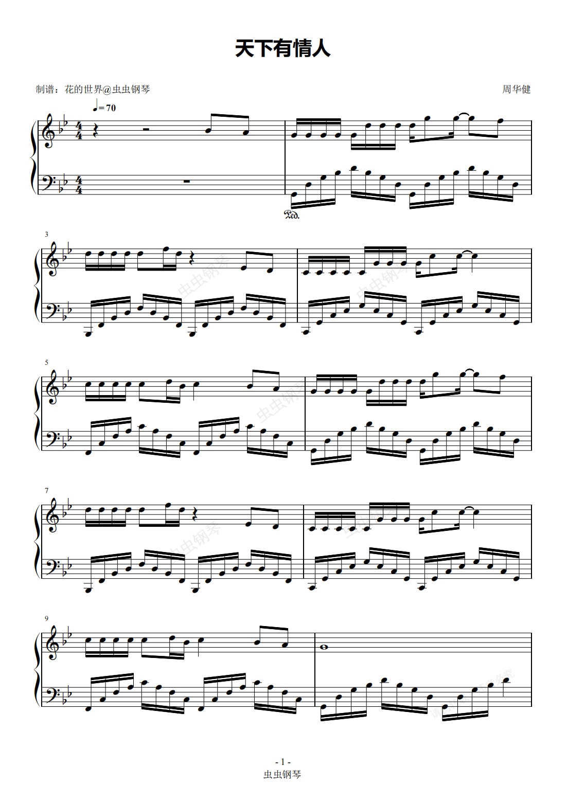 钢琴谱:天下有情人 原调简易 周华健 齐豫 流行经典