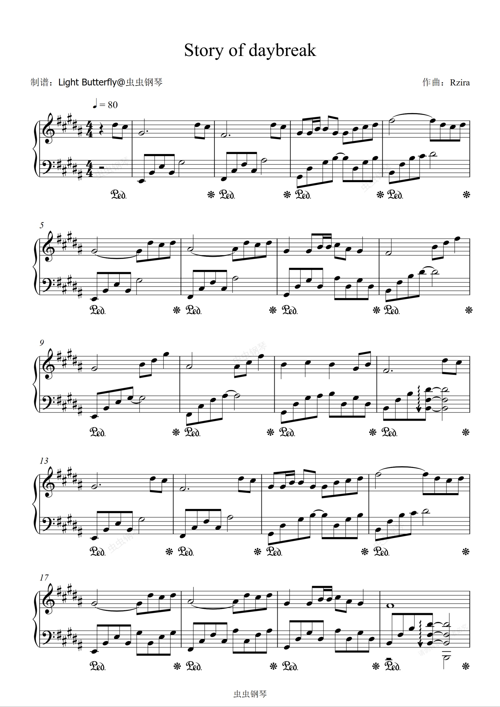 钢琴谱:Stroy of daybreak - Rzira