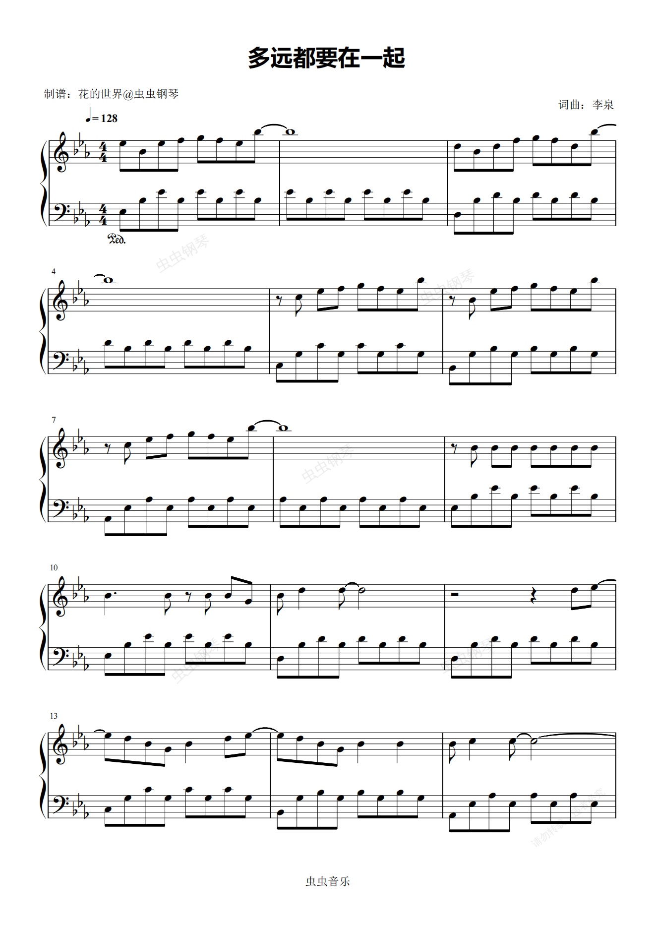 钢琴谱:多远都要在一起 原调简易版 邓紫棋