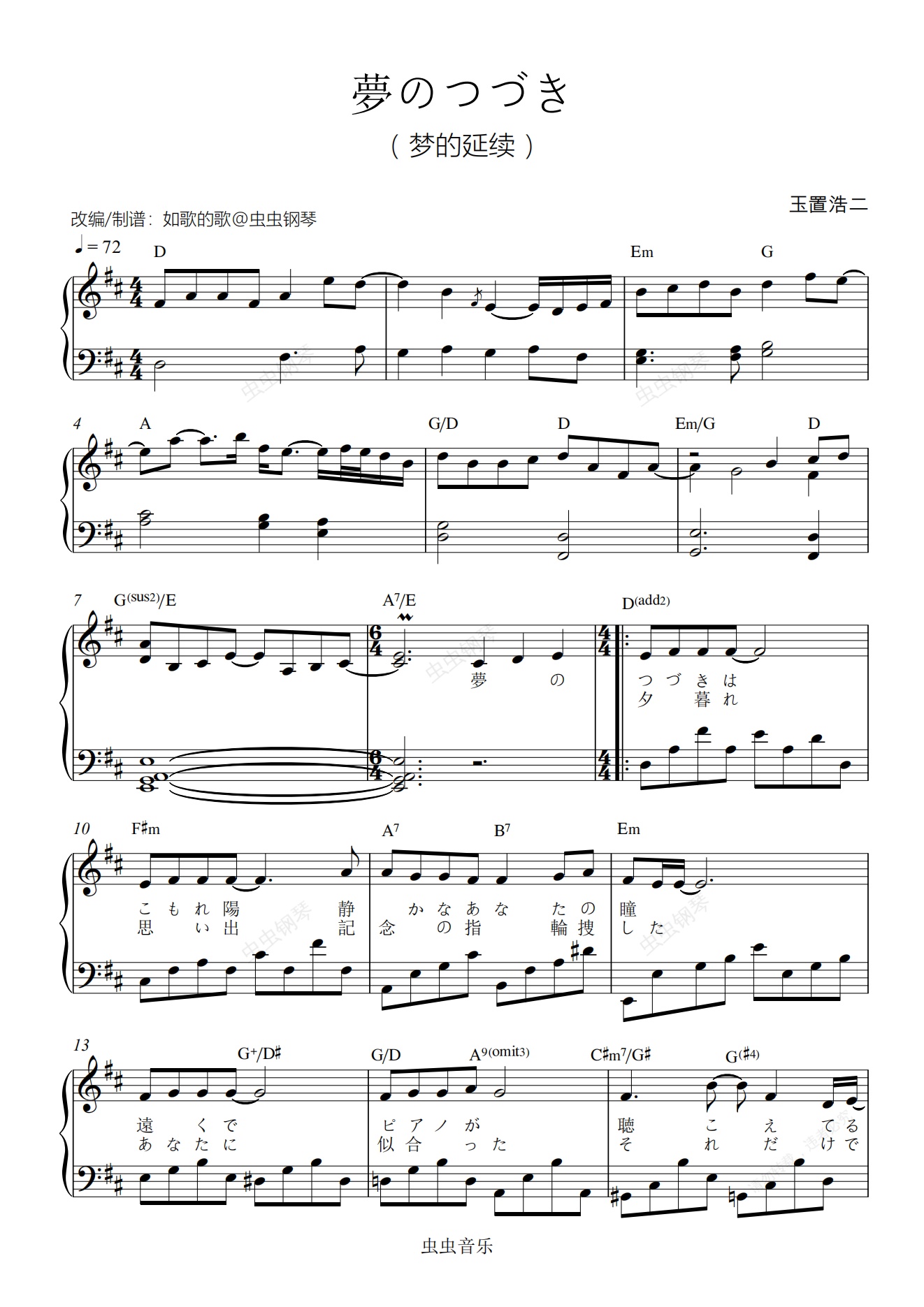 钢琴谱:夢のつづき ( 梦的延续/月半弯 )附词可弹唱