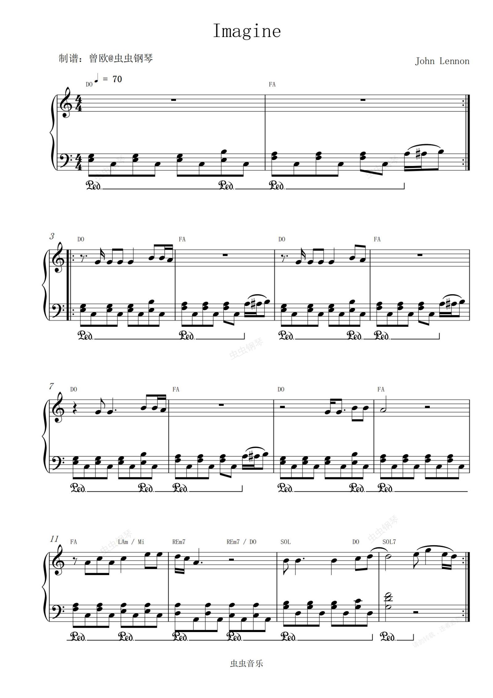 钢琴谱:Imagine - John Lennon (免费易弹)