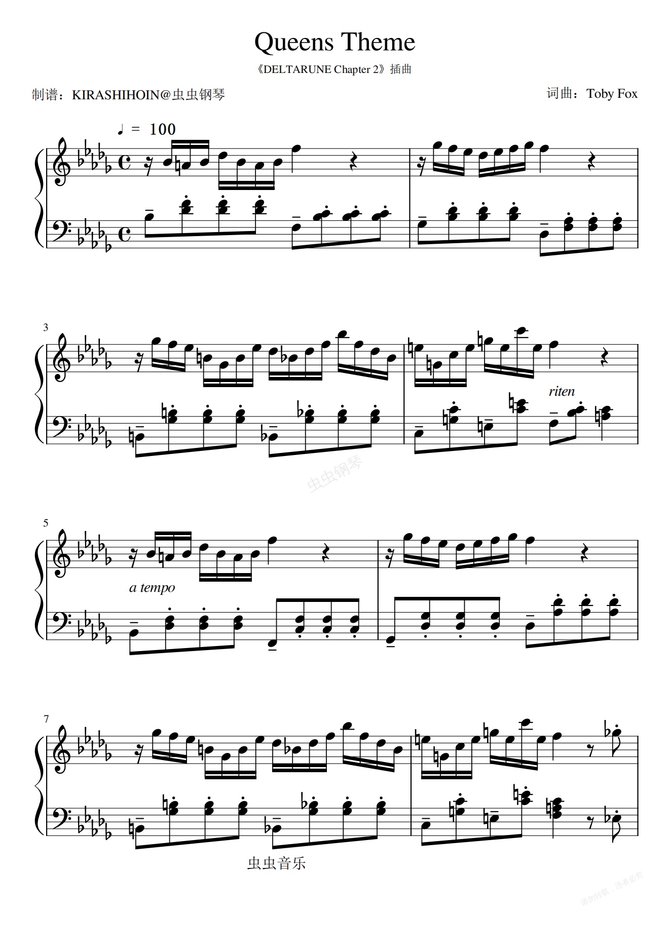 钢琴谱:Queens Theme(《DELTARUNE Chapter 2》插曲)- Toby Fox