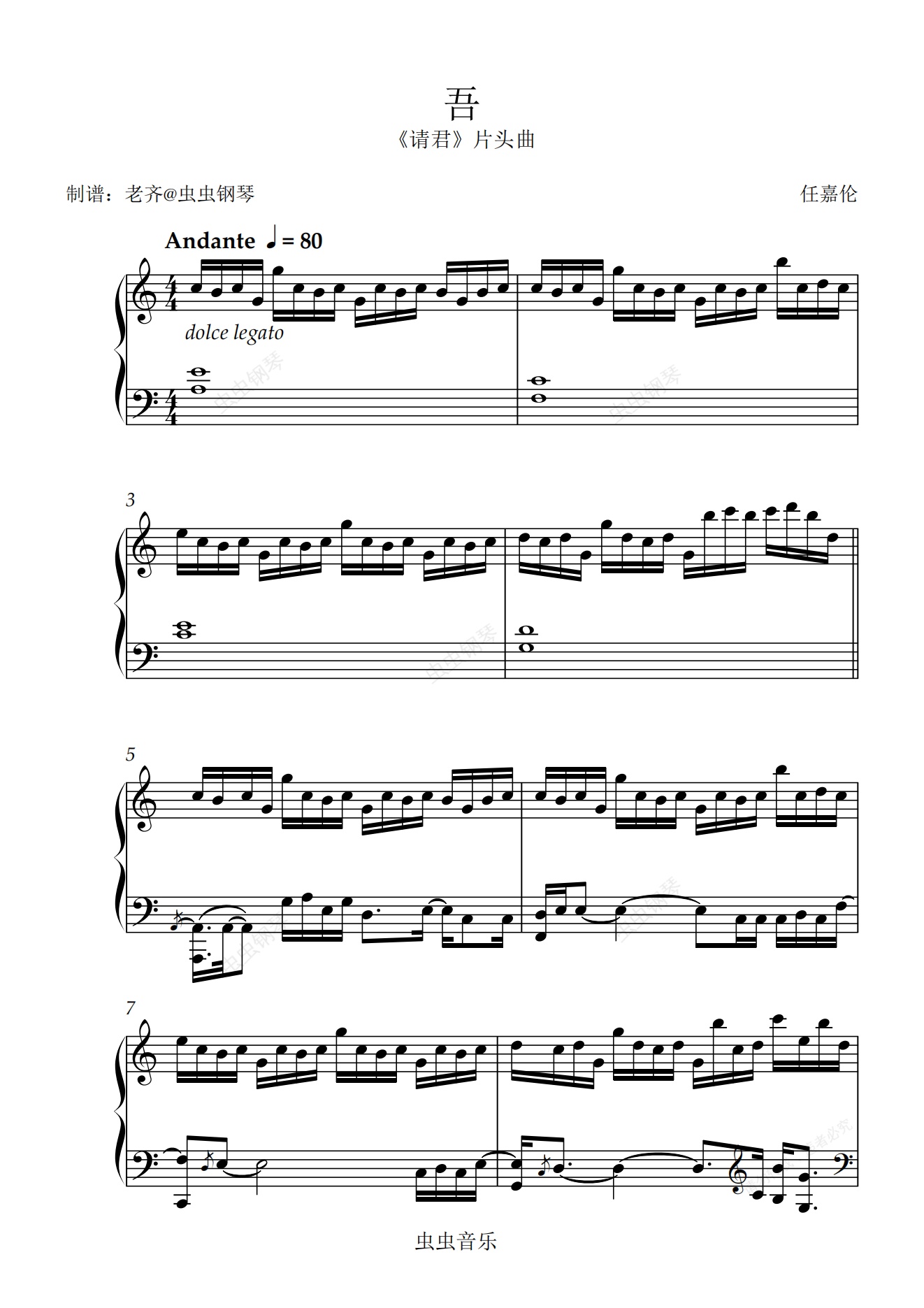 钢琴谱:吾-《请君》主题曲