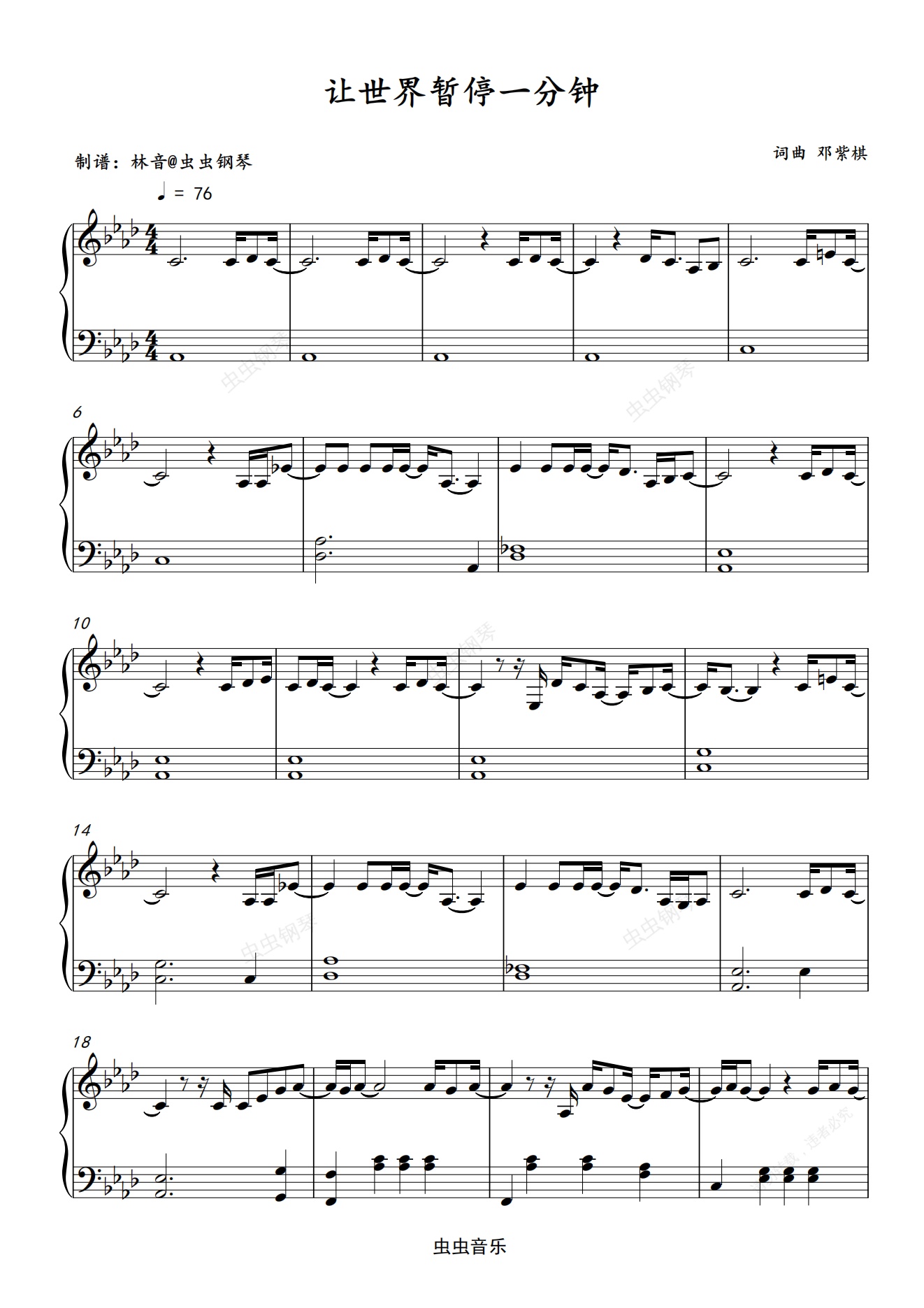 钢琴谱:《让世界暂停一分钟》原声钢琴谱
