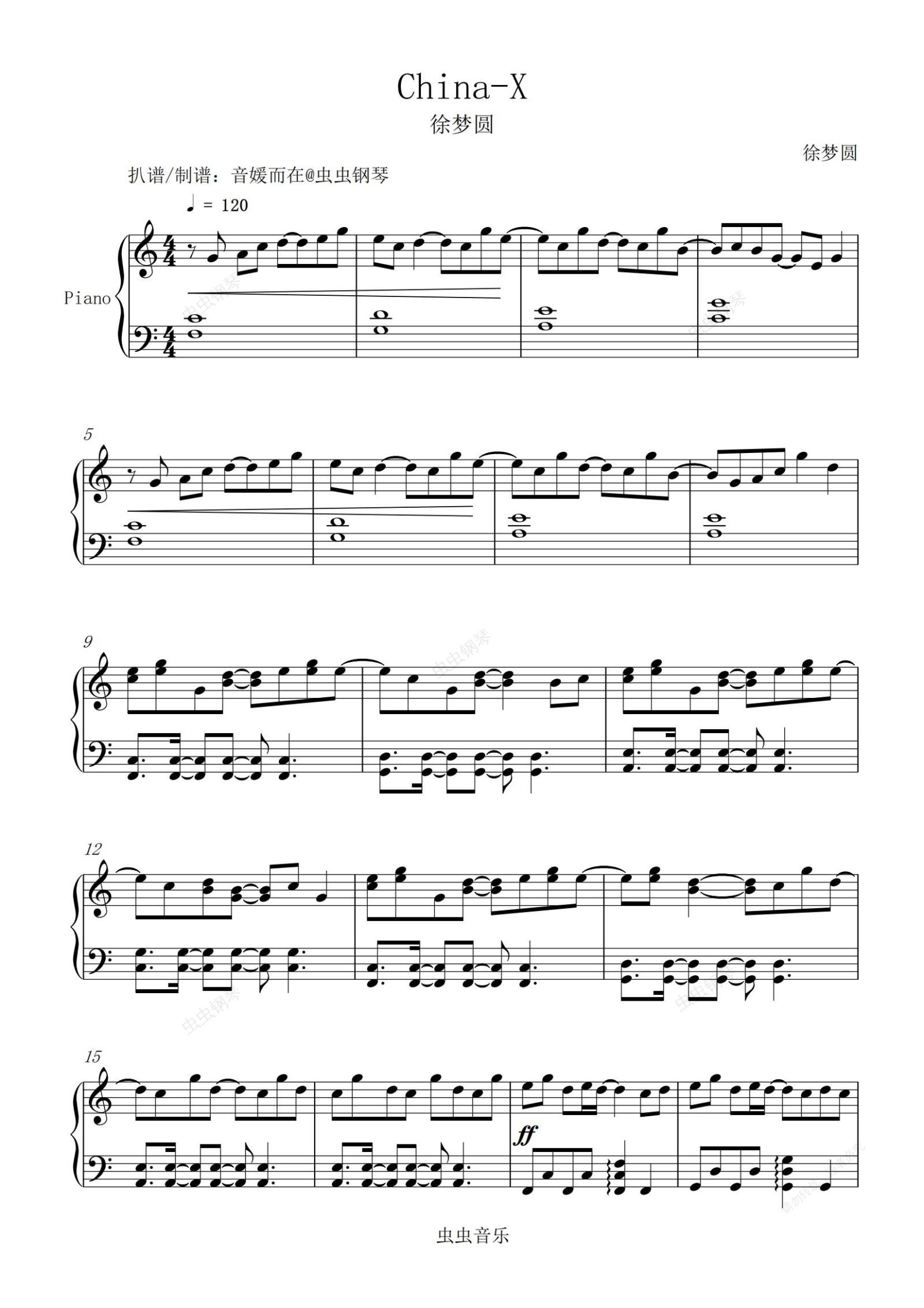 钢琴谱:C调徐梦圆《China-X》的中国风电音