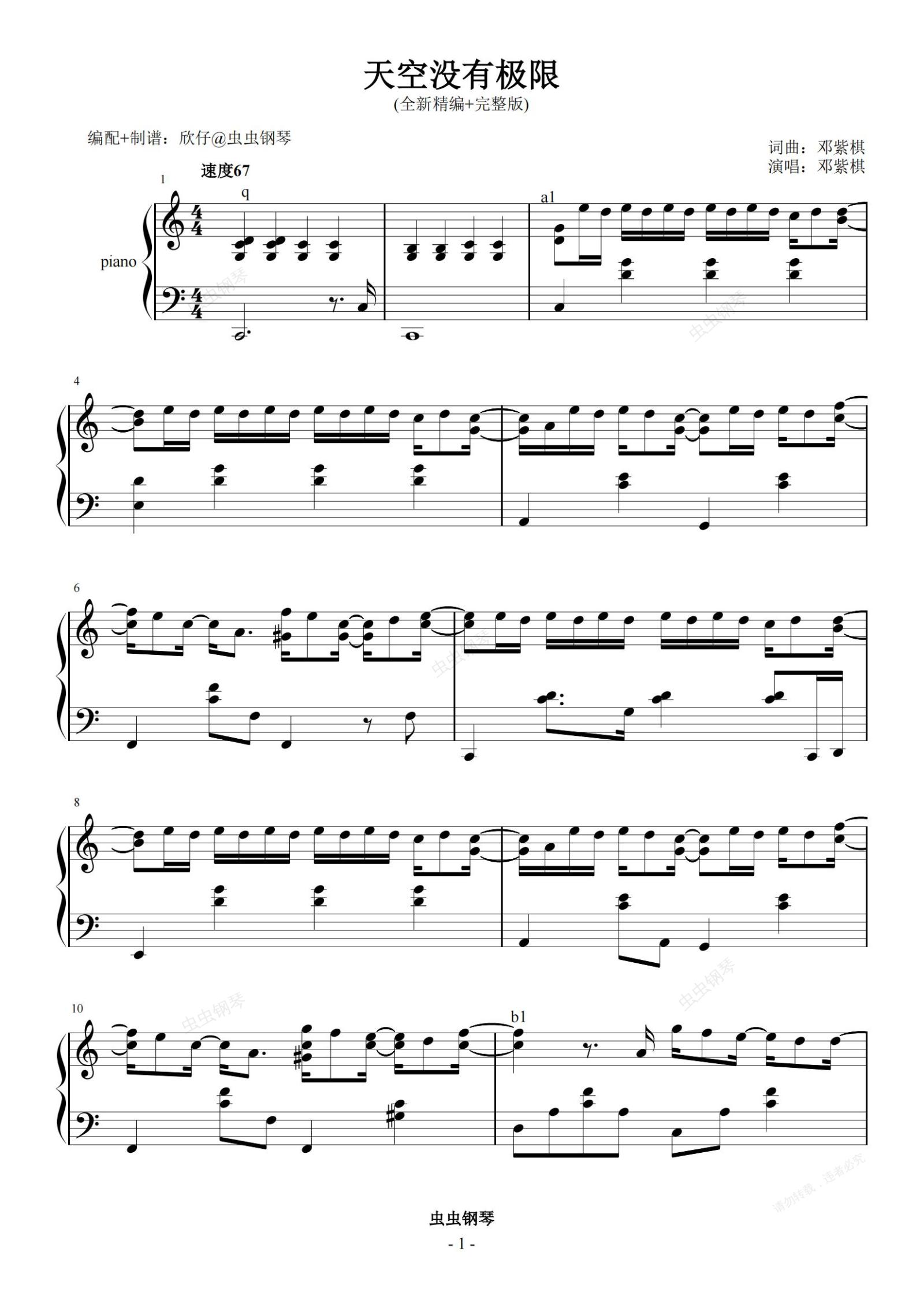 钢琴谱:邓紫棋-C调《天空没有极限》(全新精编+完整版)