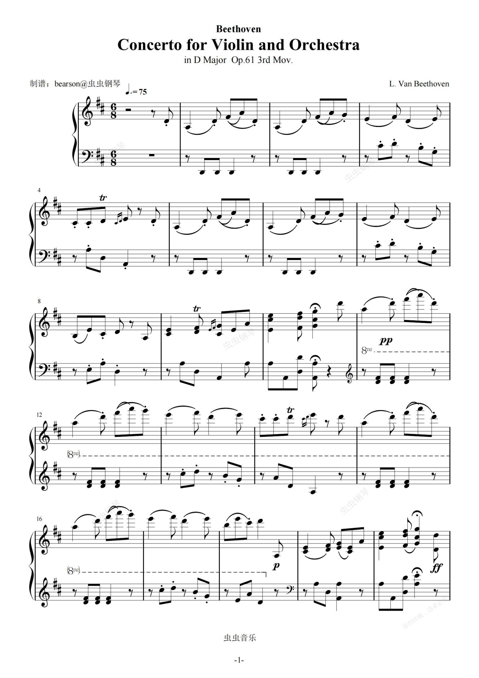 钢琴谱:贝多芬D大调小提琴协奏曲Op.61第三乐章钢琴独奏-极致还原