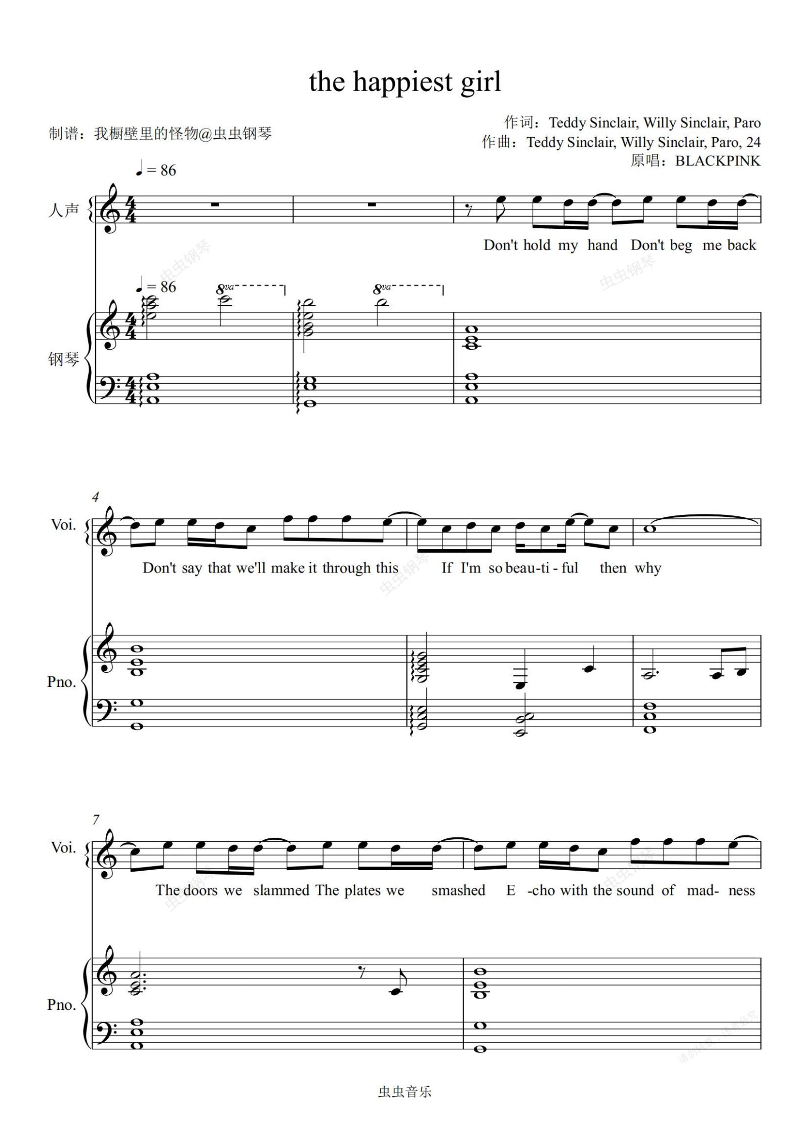 钢琴谱:【高度还原完美弹唱】The Happiest Girl完整钢琴弹唱谱