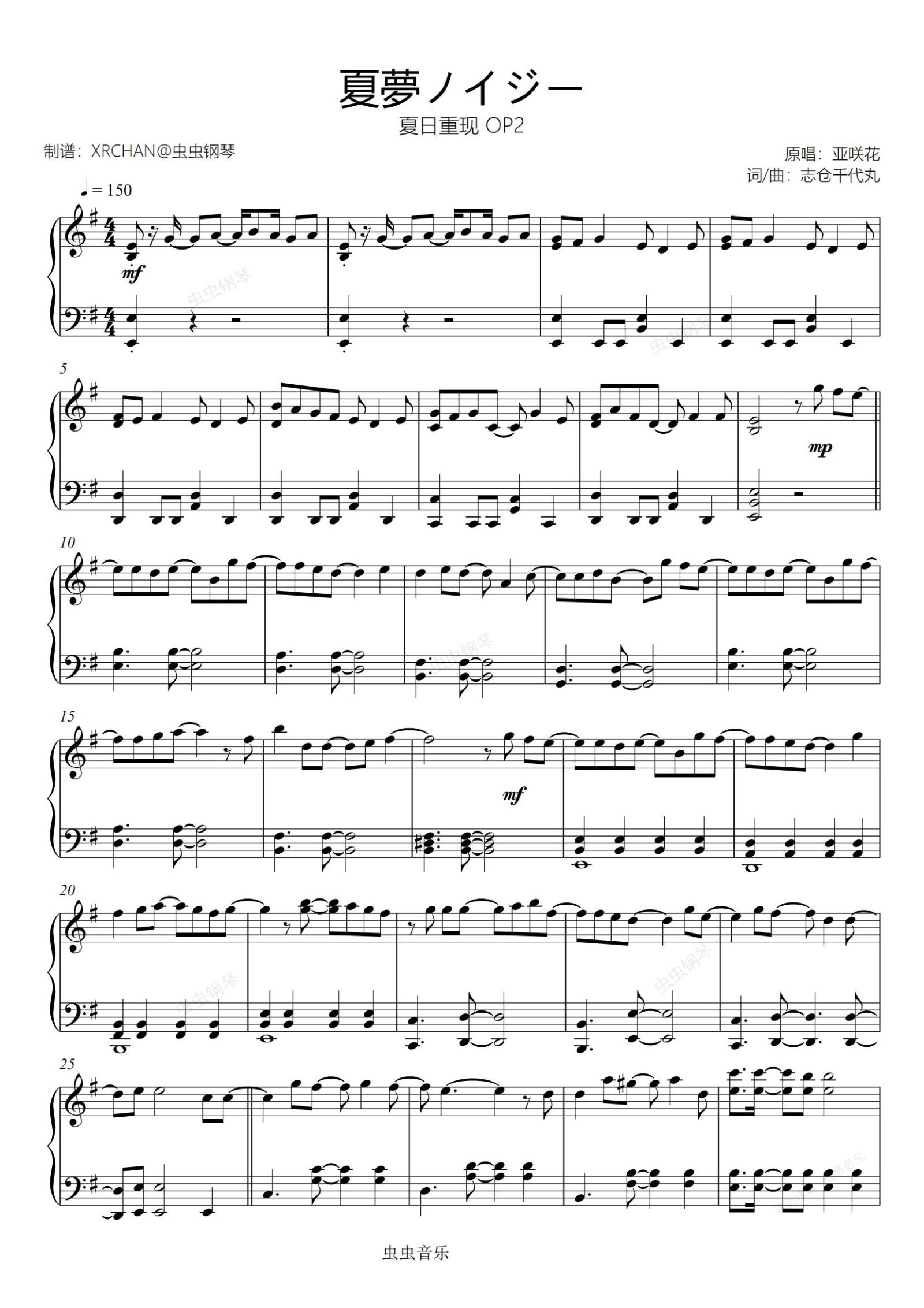 钢琴谱:《夏日重现》OP2 夏夢ノイジー G调 初级