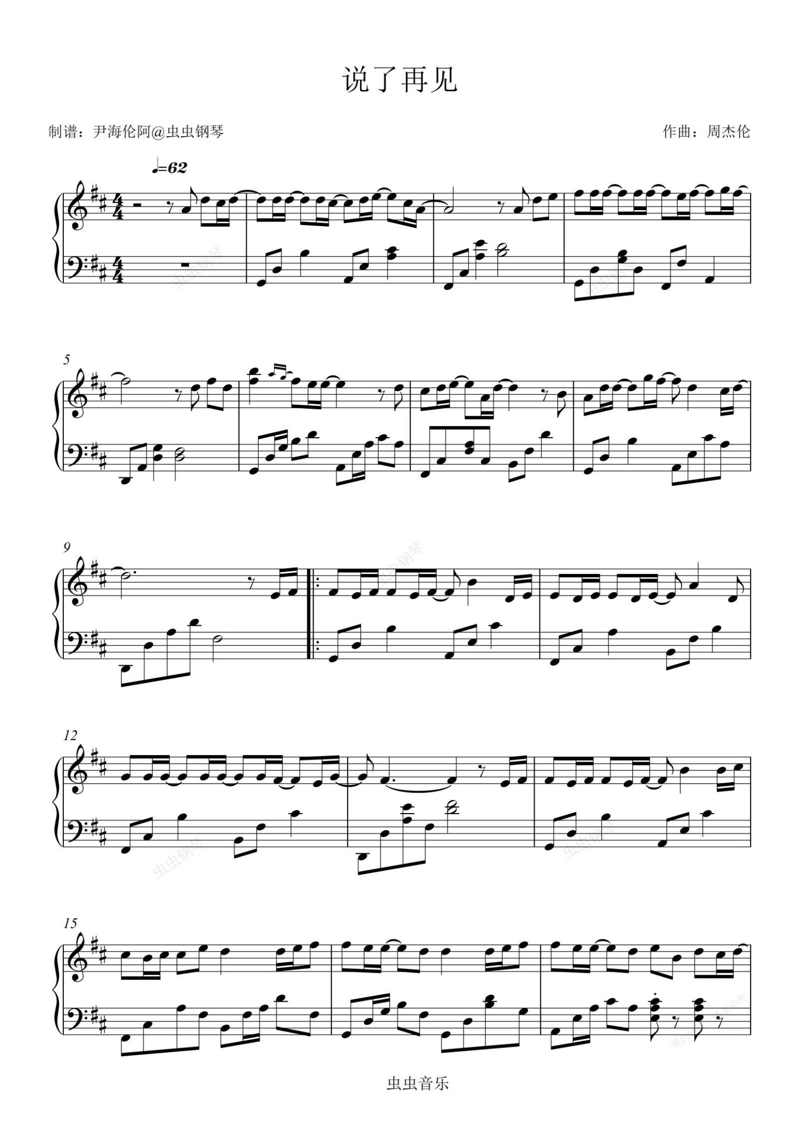 钢琴谱:周杰伦--说了再见