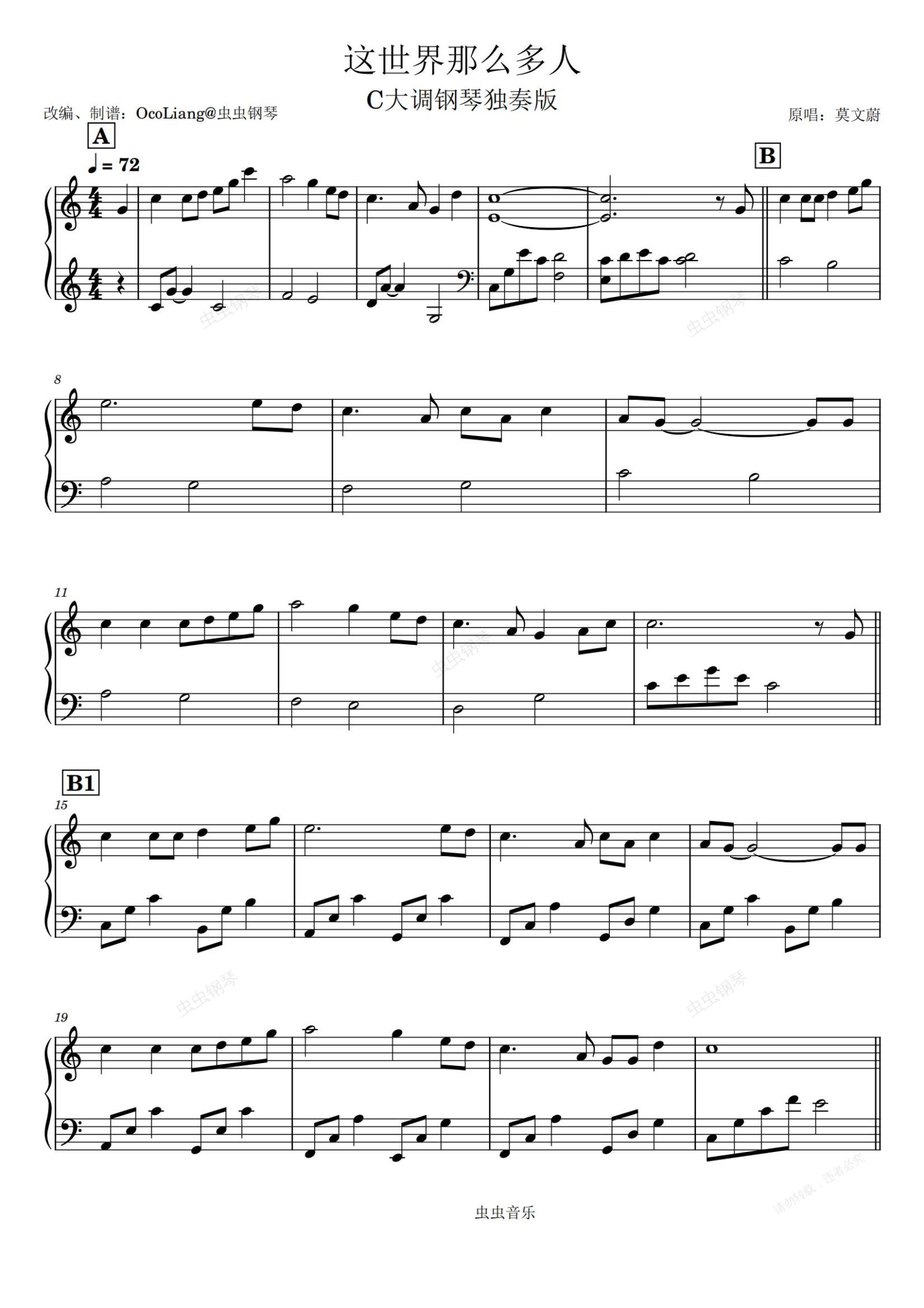 钢琴谱:这世界那么多人(C大调钢琴独奏版)