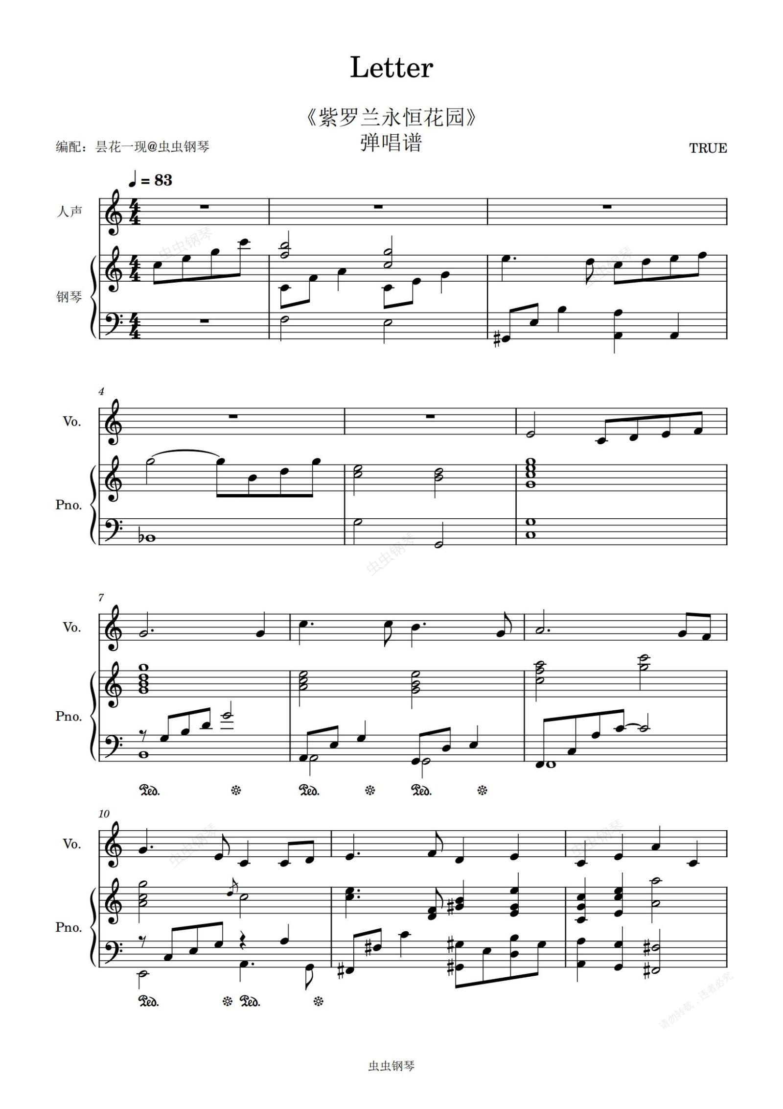 钢琴谱:Letter《紫罗兰永恒花园》 弹唱谱