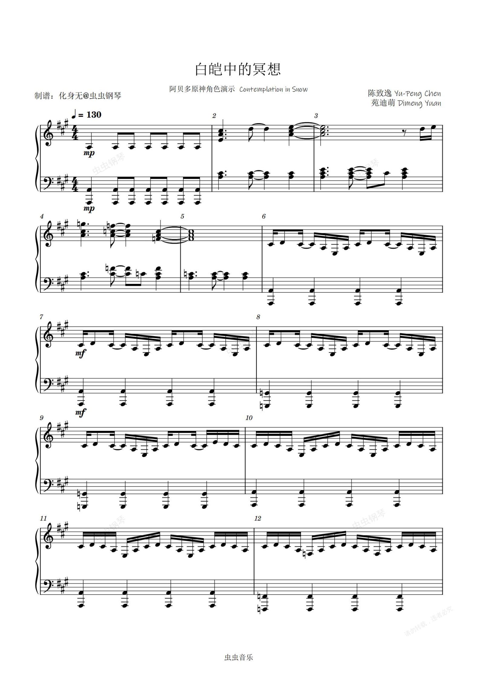 钢琴谱:白皑中的冥想 阿贝多原神角色演示 Contemplation in Snow