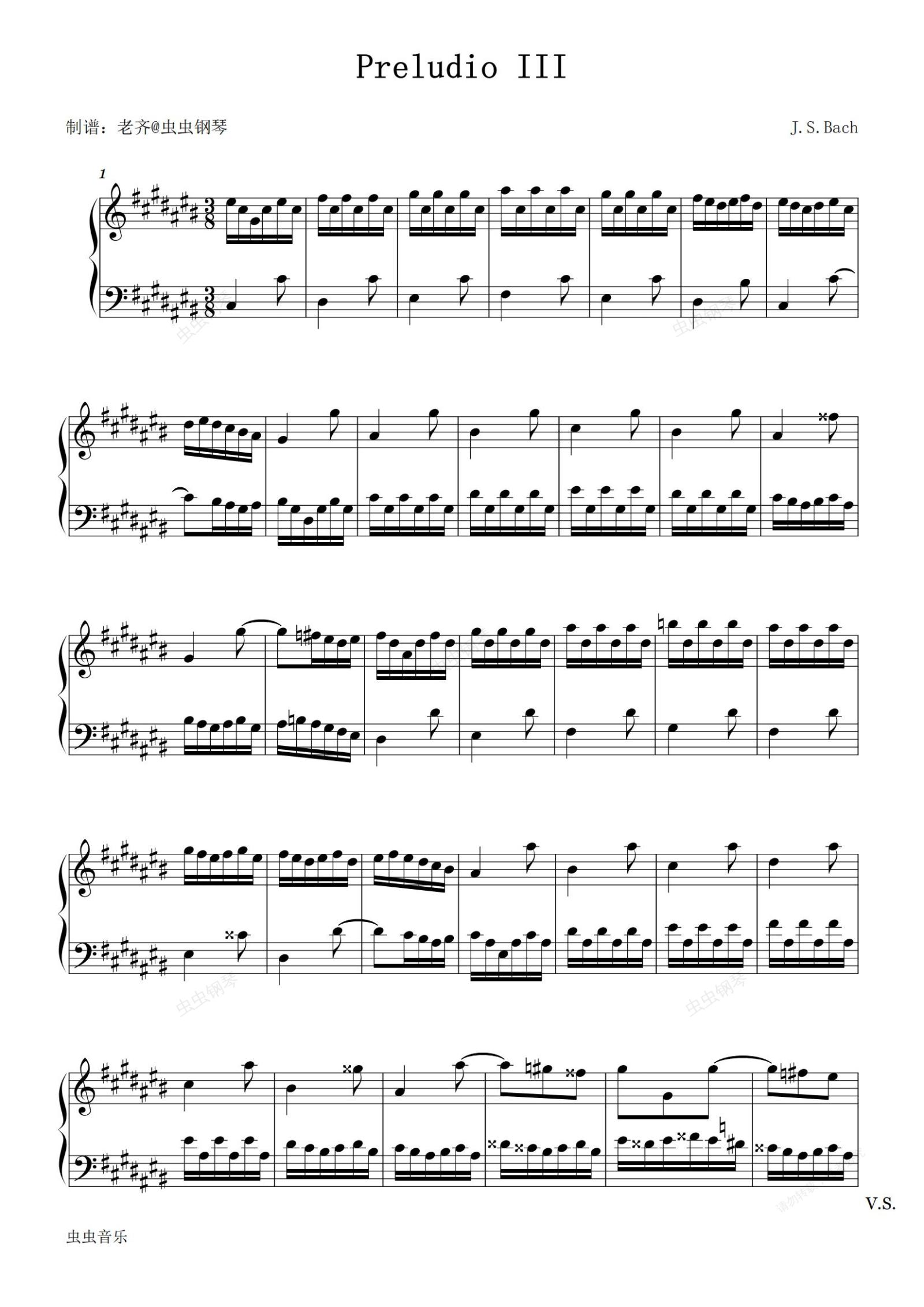 钢琴谱:【巴赫十二平均律】第一册 升C大调第三首