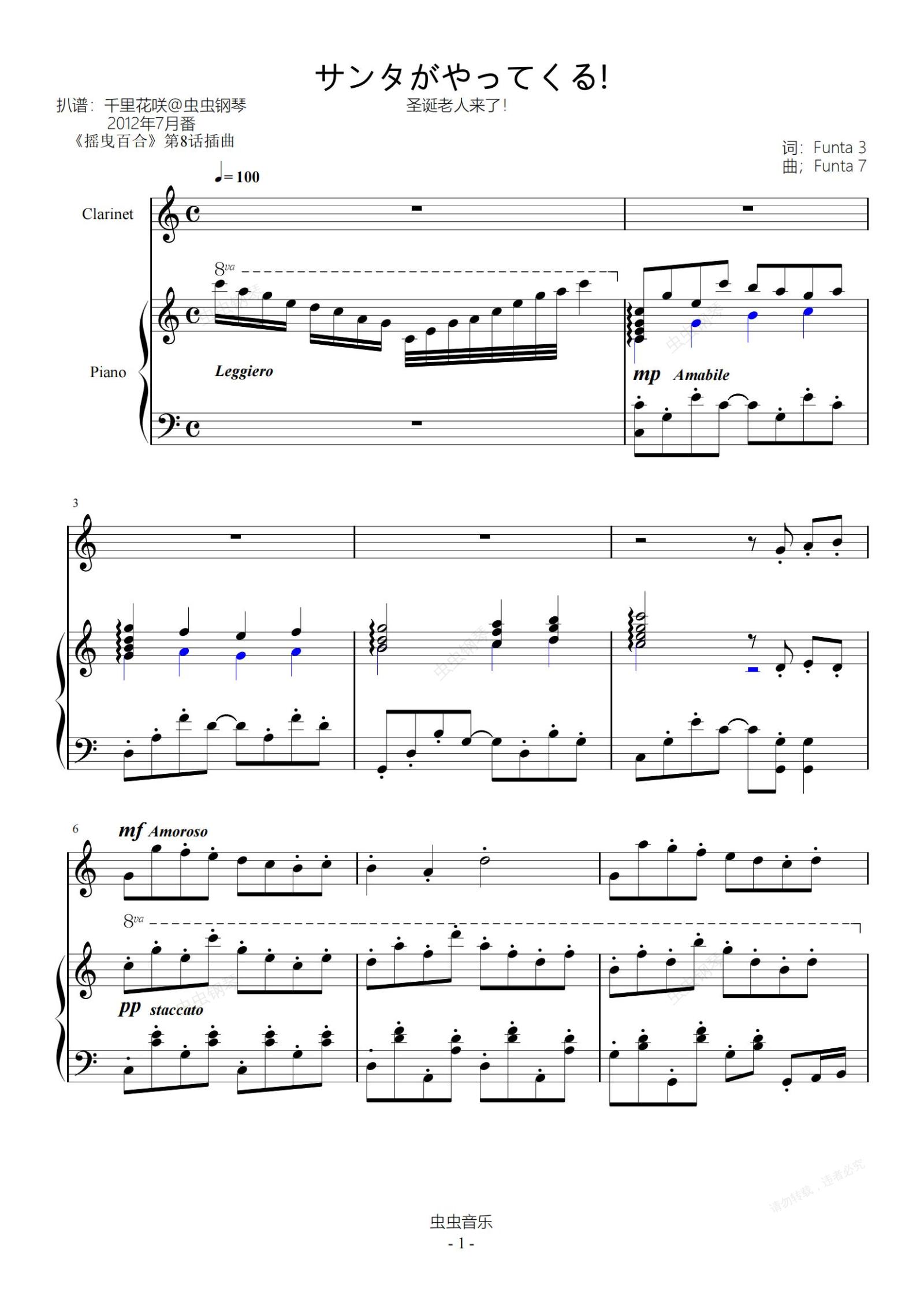 钢琴谱:【经典番·二重奏谱】摇曳百合插曲~サンタがやってくる(圣诞老人来了)