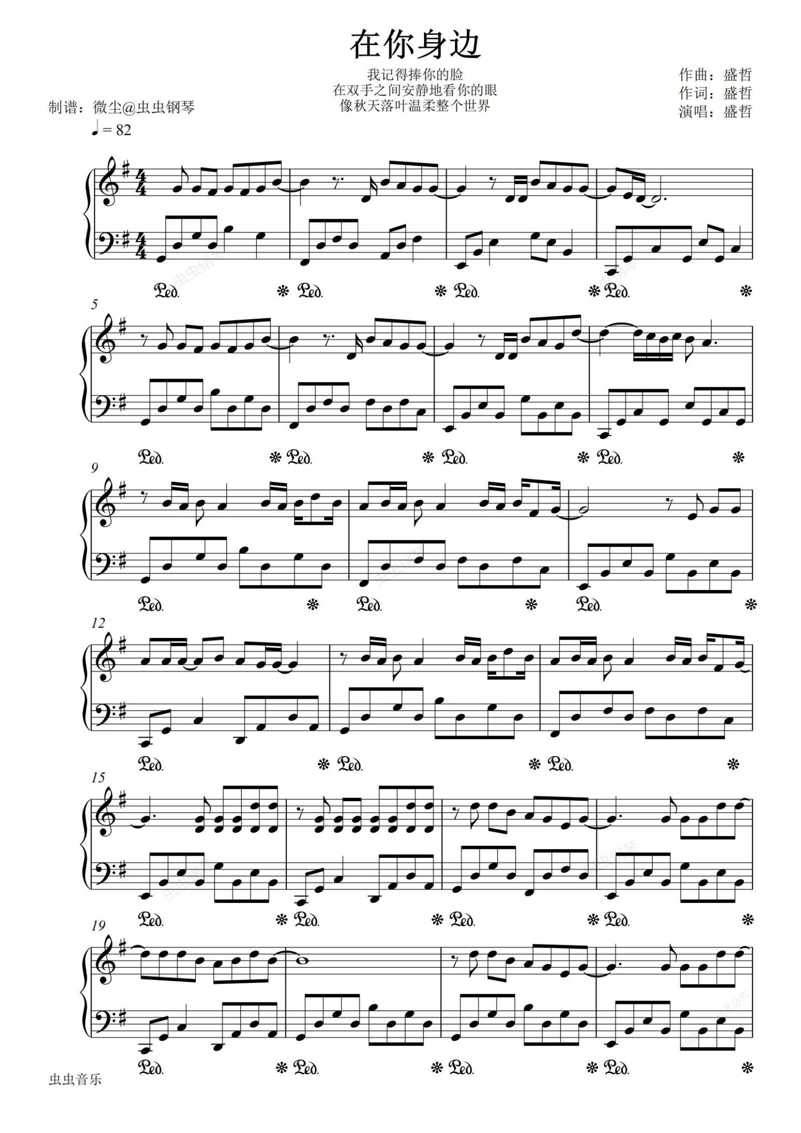 钢琴谱:在你的身边·盛哲
